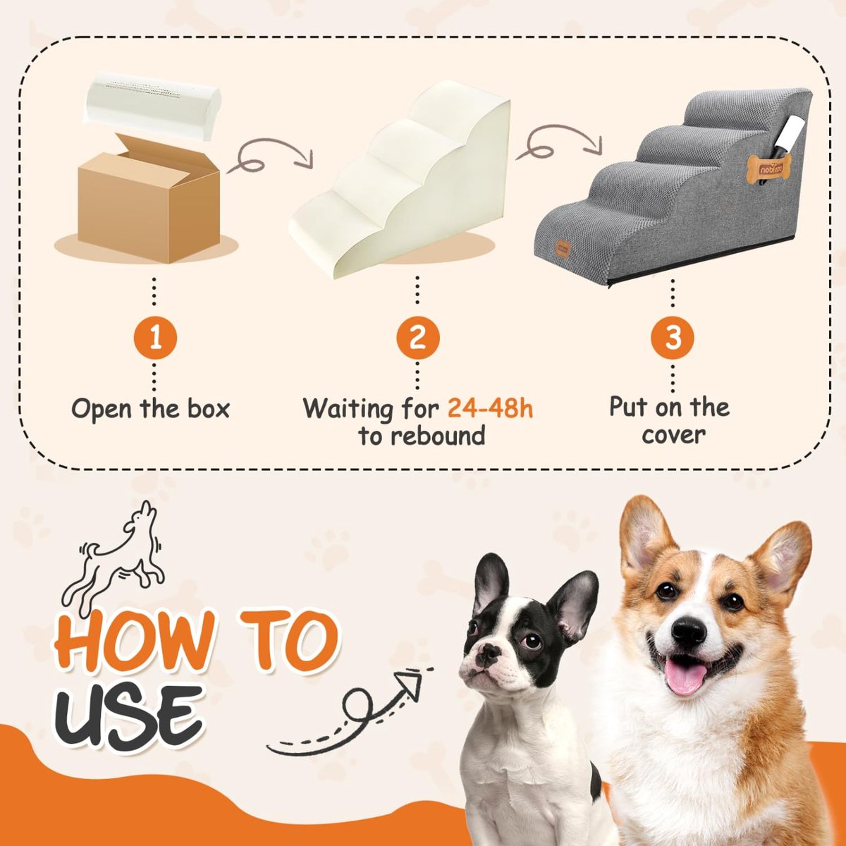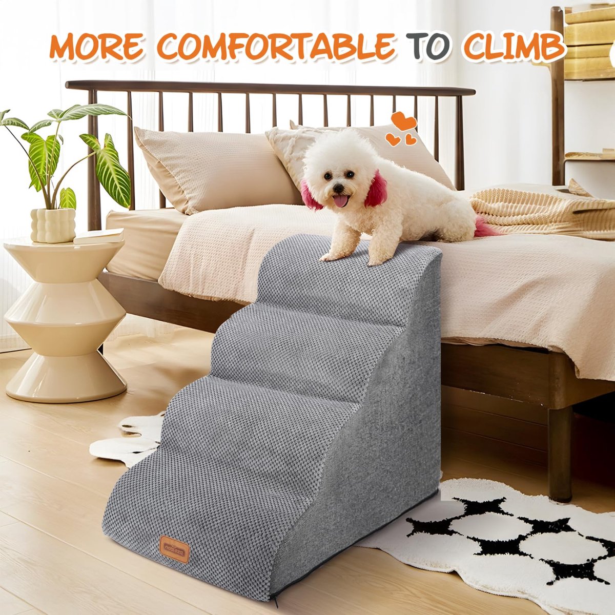 Gemaakt van hoogwaardig schuim met hoge dichtheid dat uitstekende elasticiteit en ondersteuning biedt. Het schuim past zich aan het lichaam van je huisdier aan en zorgt voor extra comfort en stabiliteit bij het op- en afstappen.