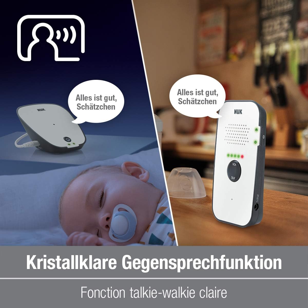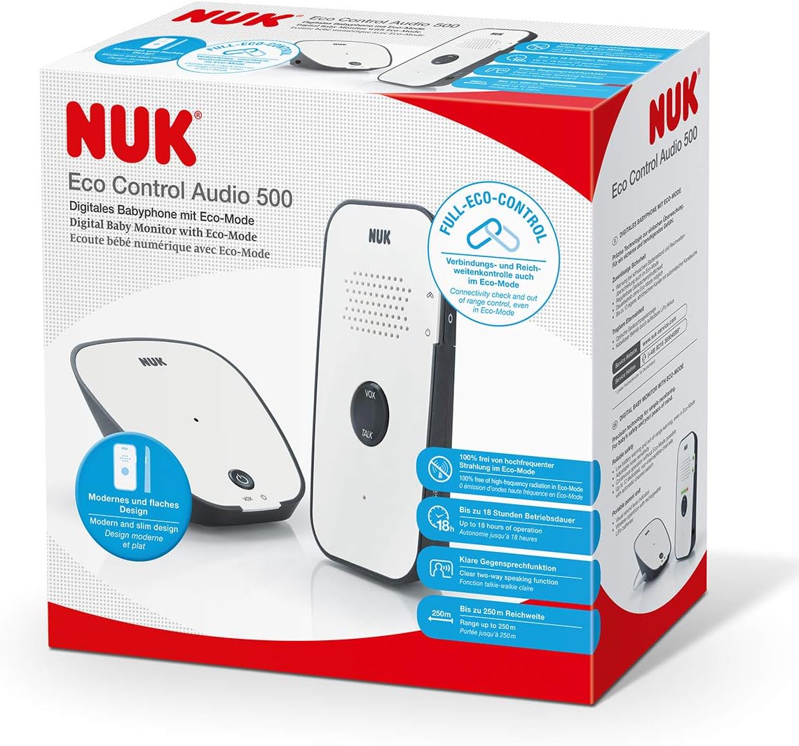Digitale babyfoon met volledige eco-controle: veilige en gevoelige audiobewaking van uw baby. De veiligheid van uw baby staat voorop, vooral voor kersverse moeders en vaders. Met de nieuwe digitale babyfoon van NUK bent u perfect uitgerust voor de eerste fases met uw pasgeborene, vooral als het gaat om het bewaken van de soms wisselvallige en onrustige slaapfases van uw kleintje. De NUK Eco Control Audio 500 geeft u altijd het veilige en geborgen gevoel dat u er voor uw baby bent, zelfs als u niet in de directe omgeving van uw baby bent. De nieuwe NUK babyfoon heeft een eco-modus die de straling in de babykamer beperkt terwijl uw baby slaapt en een volledige eco-controlefunctie, die continu de verbinding tussen de twee units bewaakt. Dit betekent dat u altijd in contact kunt blijven met uw kleintje. U wordt direct gewaarschuwd zodra uw baby huilt, als de verbinding verbroken is of als u geen bereik heeft. Met de eco-modus is de babykamer 100% vrij van hoogfrequente straling en wordt je baby niet blootgesteld aan onnodige elektrosmog. Met de NUK Eco Control Audio 500 blijf je flexibel en geniet je tegelijkertijd van optimale veiligheid en betrouwbare bewaking.