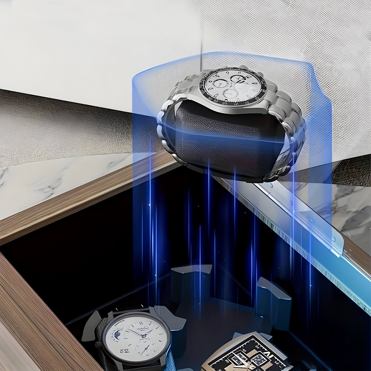 Deze zeer luxe en unieke watchwinder van Olvy is een hoogwaardig accessoire voor het veilig opbergen en opwinden van jouw automatische horloges. Met zijn stijlvolle design en geavanceerde functies zorgt het ervoor dat de horloges altijd op tijd en klaar voor gebruik zijn.