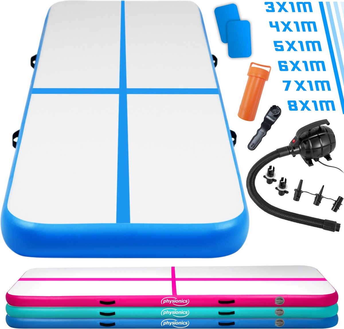 Opblaasbare PVC gym mat, 3 meter, met elektrische luchtpomp, gymnastiekmat, trainingsmat, fitnessmat