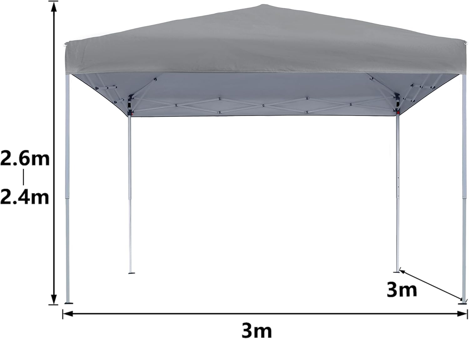 Kleur: Antraciet / Grijs / Wit / Groen / BlauwMaat: 3x3mInstelbare hoogte: 2,4-2,6 m. Bovenste ijzeren stang en dwarsstang: 11 x 22 mm. IJzeren poten: 25 x 25 / 20 x 20 x 0,5 mmMateriaal buitenstof: 210D Oxford stofrek: Kunststof spuitbehandeling