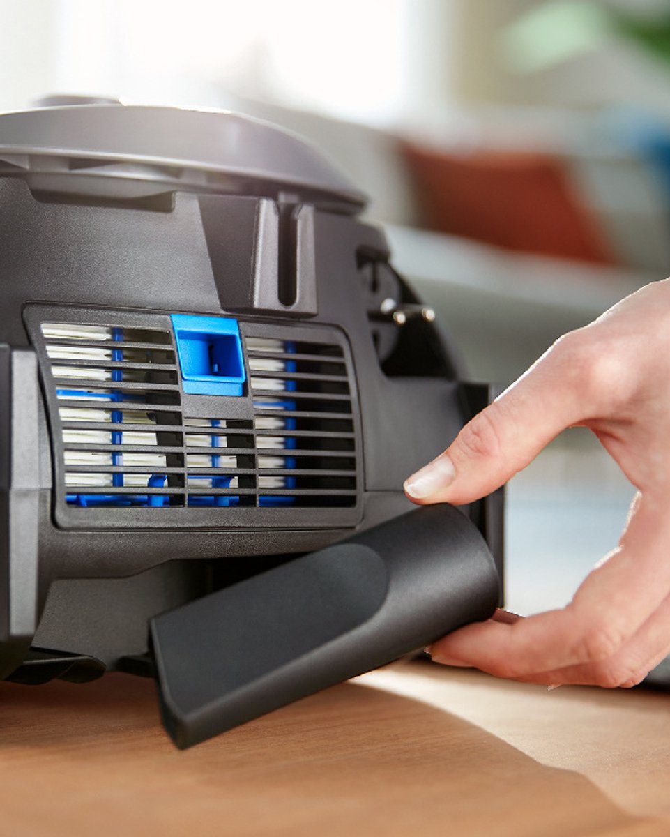 De grote stofkamercapaciteit kan een volle zak van drie liter aan voordat de zak moet worden vervangen.