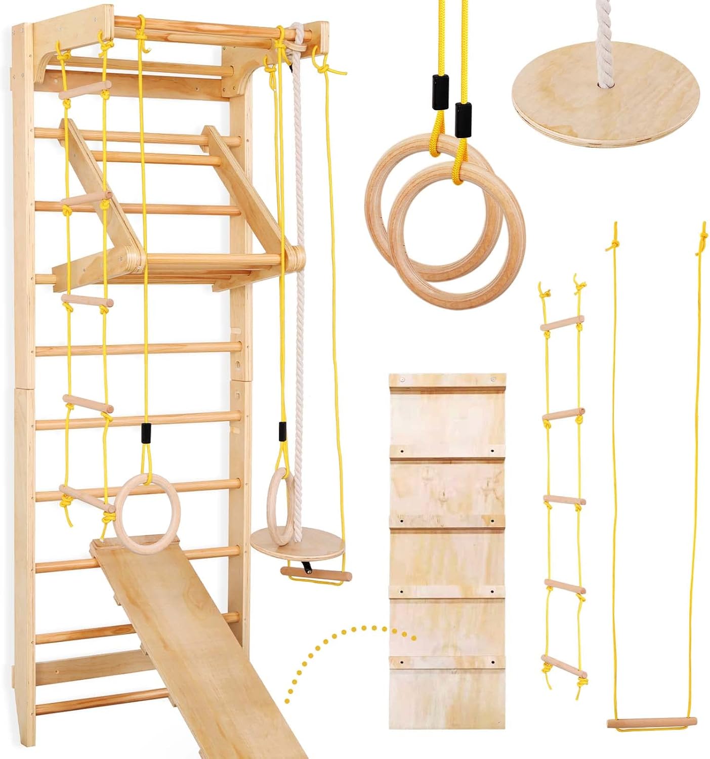 De wandrekset is zowel voor het actieve plezier van kinderen als een klassiek trainingsapparaat voor diverse sporten en rekoefeningen. Gemaakt van multiplex en grenen, is dit een betrouwbaar en duurzaam gymnastiektoestel.