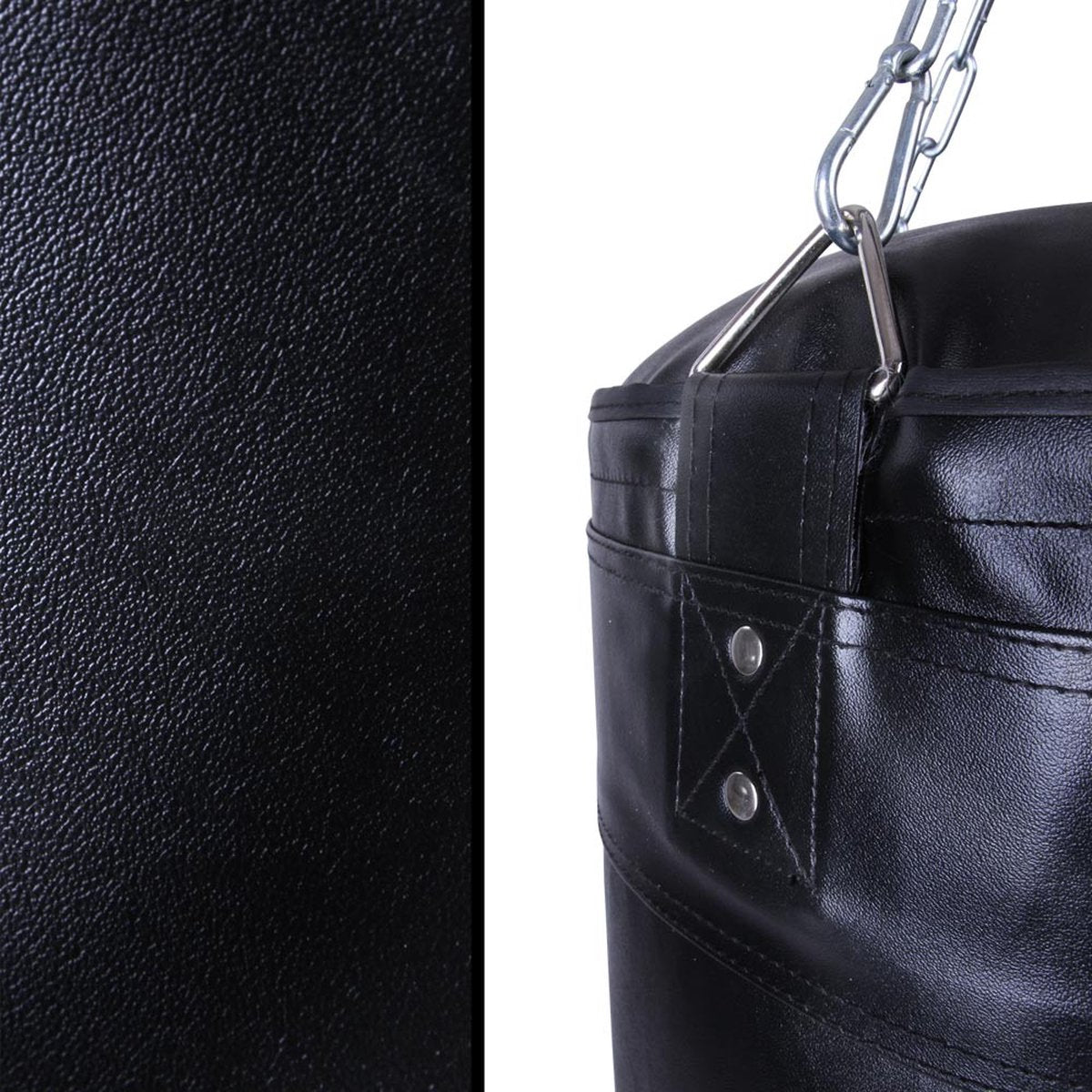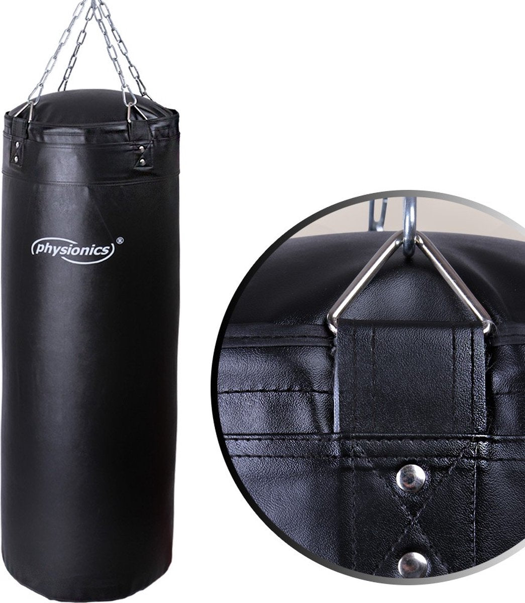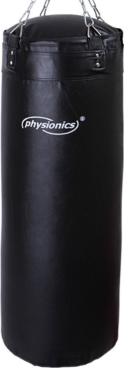 Maak kennis met de bokszak van Physionics: de perfecte keuze voor beginners en gevorderden die hun fitnessboxen en boxtraining willen verbeteren, stress willen verminderen, geweld willen beheersen, of gewoon hun trainingsroutine willen afwisselen. Met een afmeting van 100 x 35 cm en een vulgewicht van ca. 27 kg, is deze bokszak solide en van hoogwaardige kwaliteit. De vierpunts-staalkettingophanging met draaimechanisme zorgt voor veilige en gemakkelijke ophanging. De bokszak is gemaakt van scheurvast kunstleer en bevestigd met studs voor duurzaamheid.
