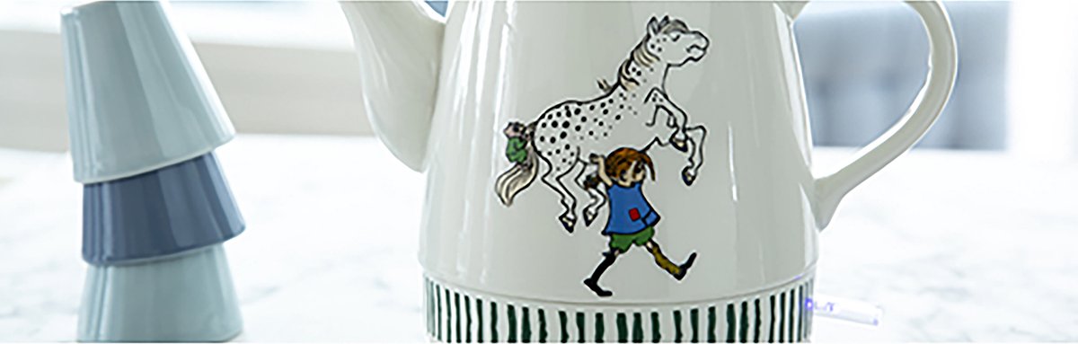 Wie kent Pippi Langkous nou niet? Onlangs is het merk erkend als één van de top 10 wereldwijde licentiemerken. Pippi is een van de meest bekende personages uit kinderboeken ter wereld. De verhalen over Pippi zijn in meer dan 100 talen vertaald en worden over de hele wereld erkend door het avontuurlijke leven van het meisje dat paarden kan optillen en de regels durft te breken. Met de Pippi Langkous Keramische Waterkoker komen jeugdherinneringen weer tot leven. Door de combinatie van modern Scandinavisch interieurdesign en zorgvuldig geselecteerde illustraties uit het inspirerende Pippi-universum, krijgt je een kwaliteitsproduct als de 20130002 dat niet alleen design en functionaliteit biedt, maar ook emotionele waarde heeft en elke keer een grote glimlach op het gezicht tovert bij het betreden van de keuken. Dus waar wacht je nog op?