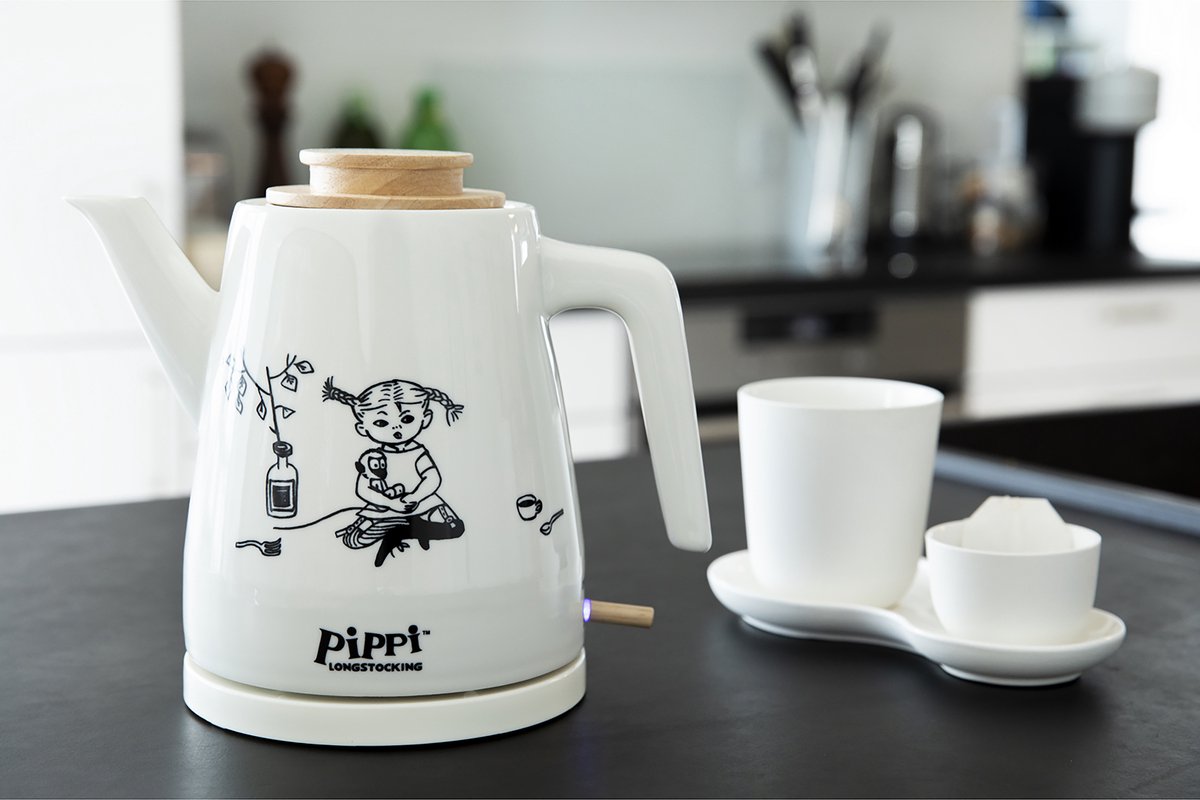 De Pippi Keramische Elektrische Waterkoker is een ware blikvanger in de keuken. Met zijn unieke keramische ontwerp en het motief dat nostalgische gedachten oproept, voegt deze waterkoker een vleugje charme en speelsheid toe aan elke keuken. Of je nu een fan bent van Pippi Langkous of gewoon houdt van unieke en bijzondere keukenapparatuur, deze waterkoker zal zeker de aandacht trekken en een glimlach op je gezicht toveren. Het keramische materiaal geeft niet alleen een duurzame en stevige constructie, maar ook een nostalgisch gevoel dat doet denken aan vroeger. Met afbeeldingen van Pippi en haar trouwe metgezel meneer Nilsson aan beide zijden van de waterkoker, wordt elke gebruiker herinnert aan de avontuurlijke en zorgeloze geest van Pippi Langkous. Het houten deksel voegt een vleugje warmte en natuurlijke schoonheid toe aan het ontwerp, waardoor het geheel nog meer charme krijgt. Naast zijn visuele aantrekkingskracht is de waterkoker ook zeer praktisch in gebruik. Met een royale inhoud van 1,2 liter kun je moeiteloos genoeg water verwarmen voor thee, koffie of andere warme dranken. Het lampje in de aan/uit-knop zorgt voor een visuele indicatie, zodat je in één oogopslag kunt zien of de waterkoker aan staat. Bovendien is de waterkoker uitgerust met een automatische uitschakelfunctie en oververhittingsbeveiliging, wat extra gemoedsrust biedt tijdens het gebruik. Het gemak staat ook centraal bij deze waterkoker. Dankzij de 360 graden basis kun je de waterkoker eenvoudig oppakken en terugplaatsen zonder gedoe met het uitlijnen van de handgreep. Het verborgen verwarmingselement zorgt niet alleen voor een strak en naadloos ontwerp, maar maakt ook het schoonmaken van de waterkoker een fluitje van een cent. Kortom, de Pippi Keramische Elektrische Waterkoker is niet alleen een functioneel keukenapparaat, maar ook een kunstwerk dat de magie van Pippi Langkous en haar avonturen naar de keuken brengt. Geniet van heerlijke warme dranken terwijl je wordt herinnerd aan de kracht van verbeelding, vriendschap en onbevreesdheid, allemaal verpakt in dit prachtige stukje keukenapparatuur.
