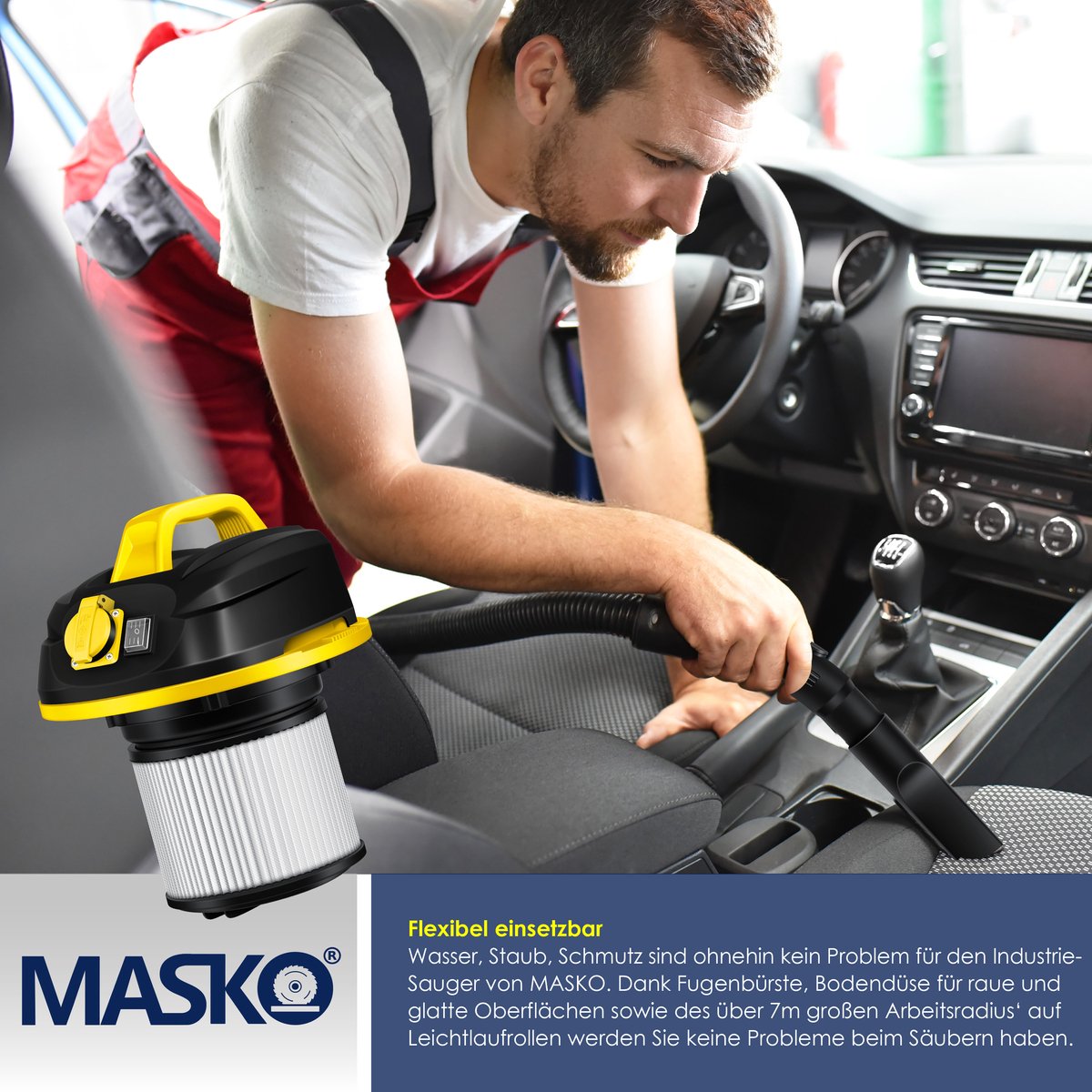 ACCESSOIRES INBEGREPEN: Water, stof en vuil zijn geen uitdaging voor de krachtige stofzuiger van het merk MASKO. Dankzij de meegeleverde kierenborstel, vloerzuigmond voor ruwe en gladde oppervlakken en de werkradius van 7 m op flexibele, lichtlopende wielen, heb je in geen enkele situatie problemen met schoonmaken.