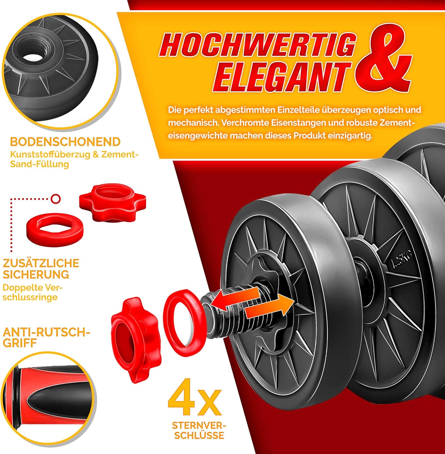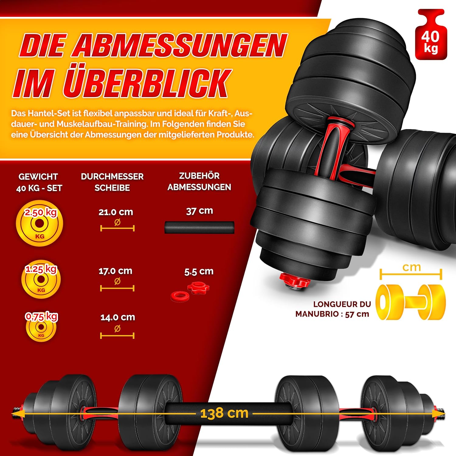 Voor beginners en topsporters: onze gewichtsschijven zijn gevuld met cementzand en bekleed met vloervriendelijke kunststof. Of het nu gaat om bankdrukken, kniebuigingen, prestatiesporters, voor thuis of fitnessliefhebbers, de RE:SPORT halterset maakt een optimale workout mogelijk.