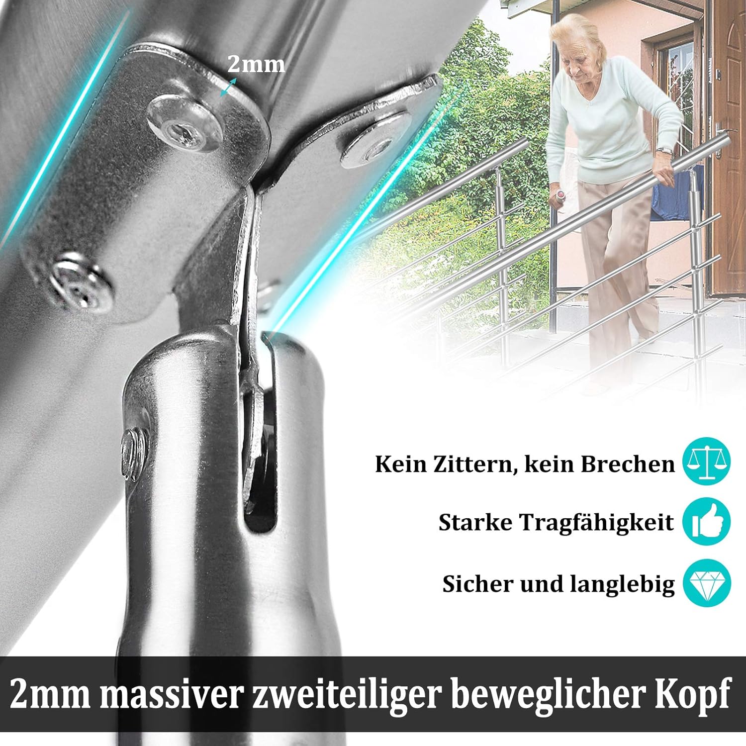 De leuning kan horizontaal en schuin worden geïnstalleerd, de hoek van de leuning kan tot op zekere hoogte worden gewijzigd. Er zijn vele toepassingsmogelijkheden. De 2 mm massieve tweedelige beweegbare kop voorkomt wiebelen en breken van de leuning.
