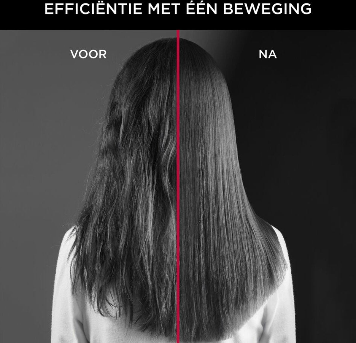 De twee zwevende platen passen zich aan de dikte van de haarlok aan, en zorgen voor optimale druk en maximale efficiëntie bij elke beweging