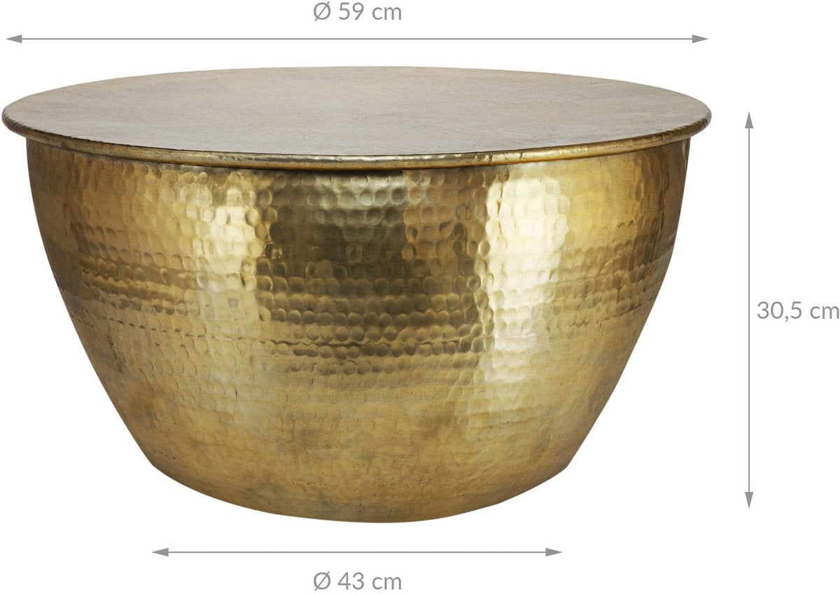 Elk stuk is uniek! De metalen salontafel in trendy gehamerde look van WOMO DESIGN brengt een vleugje van de Oriënt in uw huis! Het oppervlak is met de hand bewerkt en ziet er door de kleine oneffenheden en het kleurenspel bijzonder authentiek en exotisch uit.