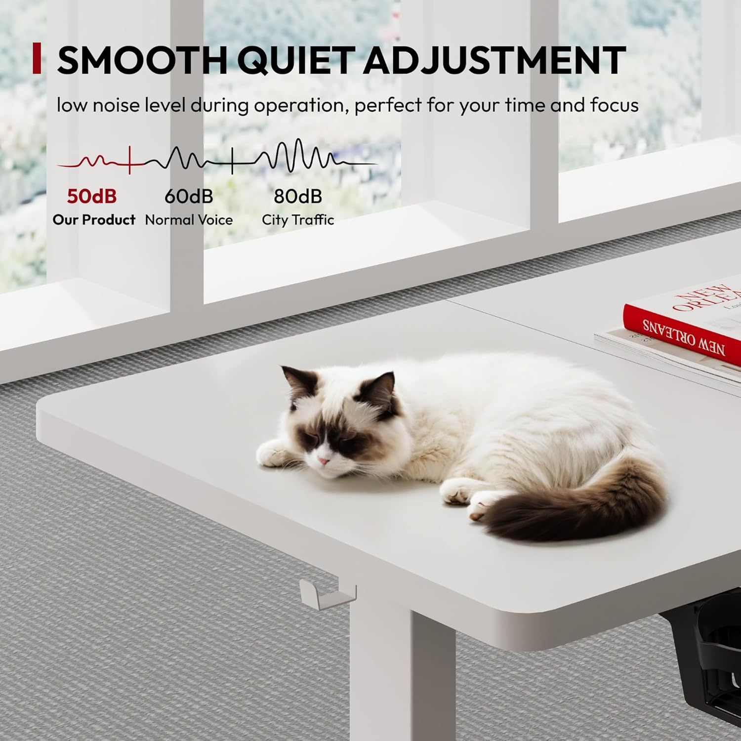 In hoogte verstelbaar: met een hoogtebereik van 73,5 cm tot 118 cm maakt dit bureau een eenvoudige wisseling tussen zit- en stapositie mogelijk. Of je nu rapporten schrijft, videoconferenties wilt bijwonen of vermoeidheid door lang werken wilt verlichten, hij biedt de gezondste zithouding. Het royale tafelblad biedt ruimte voor twee monitoren en is daarom de ideale keuze voor gamers, beurshandelaars of multitaskers.