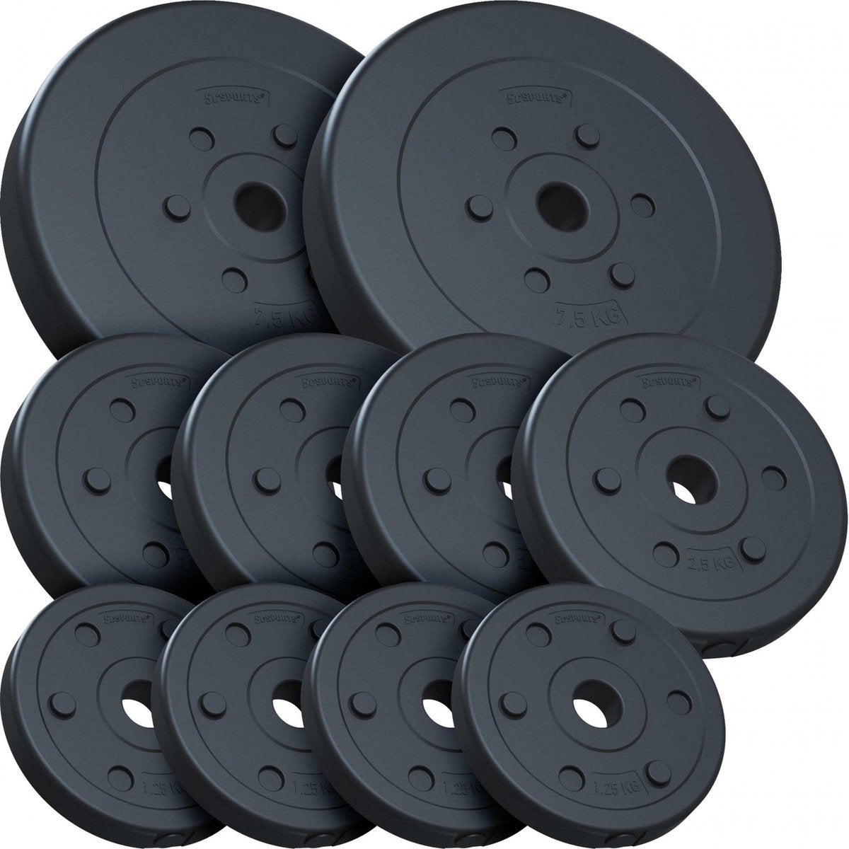 ScSPORTS Halterschijven set 30 kg, bestaande uit 2 x 7,5 kg, 4 x 2,5 kg en 4 x 1,25 gewichten, kunststof, 30 mm boring
