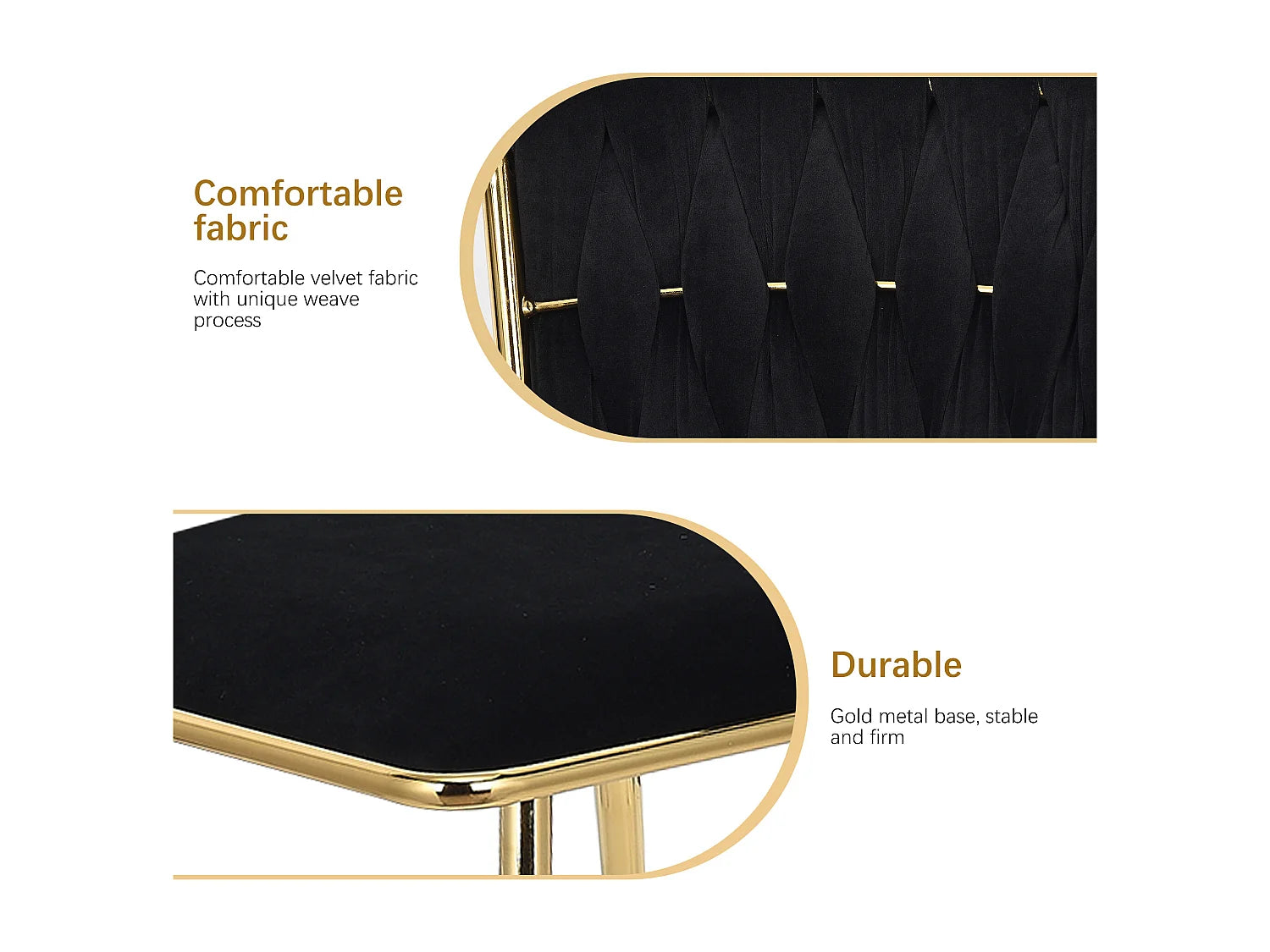 Hoogwaardig materiaal: het oppervlak van de fluwelen eetkamerstoelen is bekleed met fluweel, wat zacht aanvoelt en een huidvriendelijke en zachte zitervaring biedt. De zitting van de barkruk is gevuld met schuim met hoge dichtheid, dat stevig en elastisch is. De eetkamerstoel biedt u comfortabel en veilig zitcomfort.