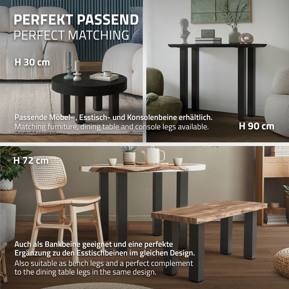 Elke poot is voorzien van een 4 mm dikke montageplaat die veilig en eenvoudig onder het tafelblad kan worden geschroefd. De geïntegreerde, in hoogte verstelbare schroefpoten zorgen voor een wiebelvrije standaard - zelfs op oneffen vloeren. In de woonkamer, studeerkamer of entree: deze tafelpoten zetten duidelijke accenten.