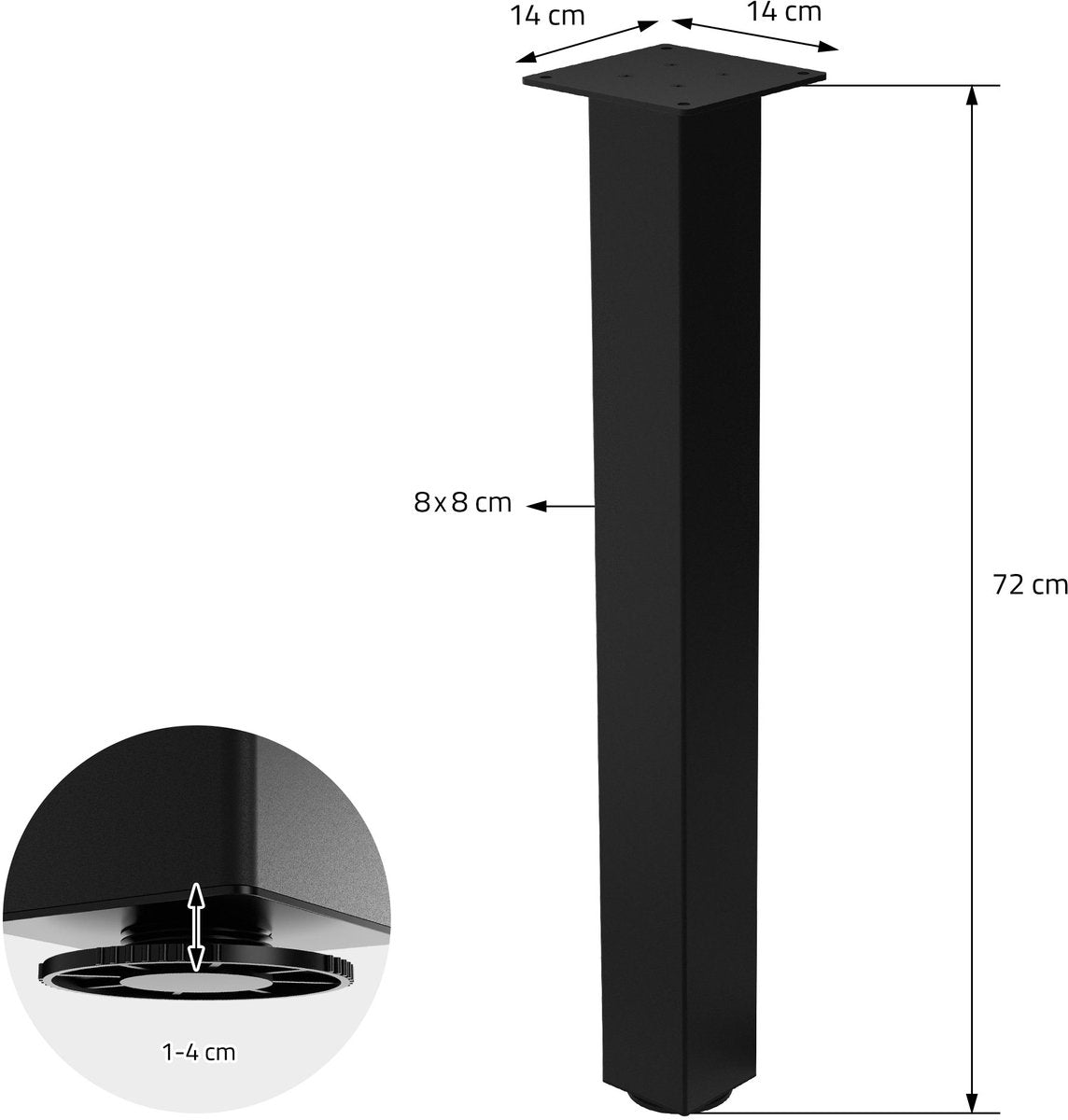 Tafelpoten 72 cm - set van 4 in I-design met in hoogte verstelbare poten