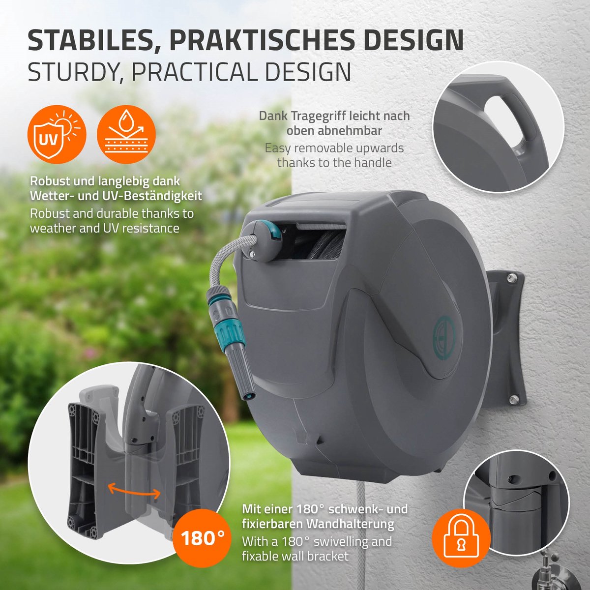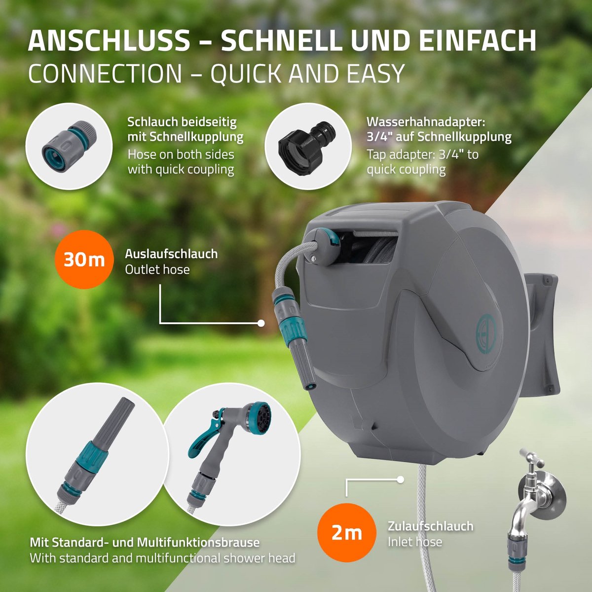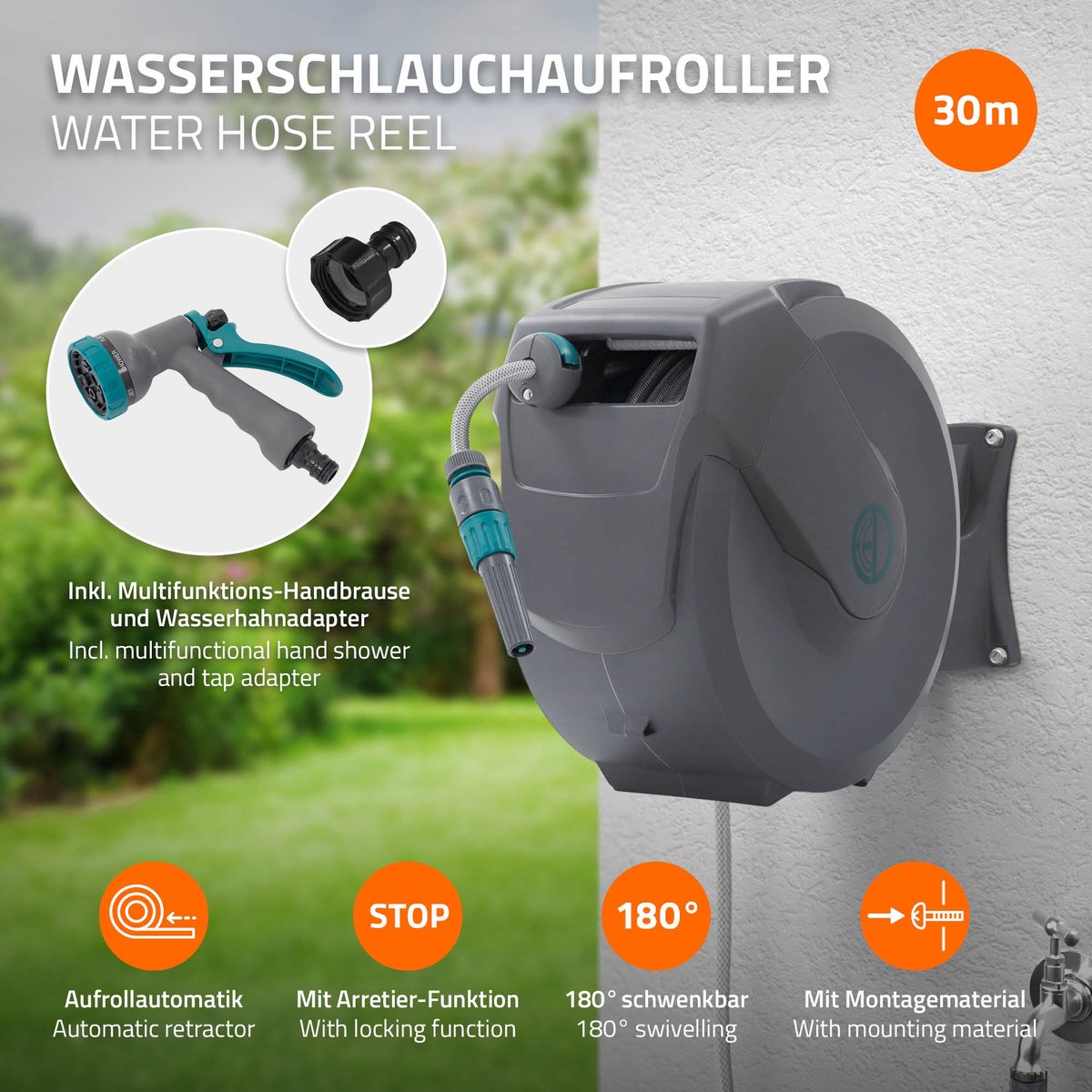 Waterslanghaspel met automatisch oprolmechanisme - 30 m slanglengte