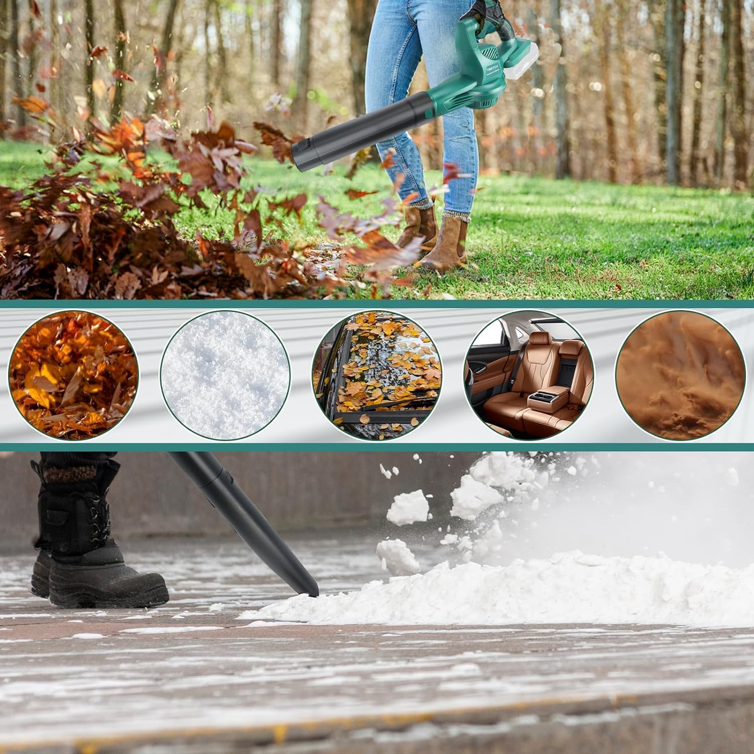 - 【Veelgebruikt】Kan vuil, gevallen bladeren en moeilijk bereikbare oppervlakken in winkels, garages, opritten, binnenplaatsen en tuinen verwijderen. Onze draadloze föhn verwijdert effectief sneeuw, stof, vuil, spinnenwebben en droge auto-oppervlakken.