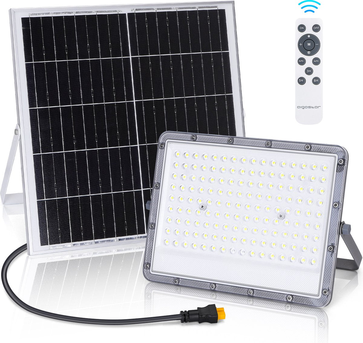 De Aigostar Solar LED schijnwerpers worden volledig door het meegeleverde zonnepaneel voorzien van stroom. Met 144 ledlampen op zonne-energie met een detectie- en verlichtingshoek van 90 graden, wordt veel meer verlichtingsbereik afgedekt en een super heldere lichtsterkte voor een breed gebied geboden. Hierdoor kun je de schijnwerper overal monteren en het paneel in de zon plaatsen.