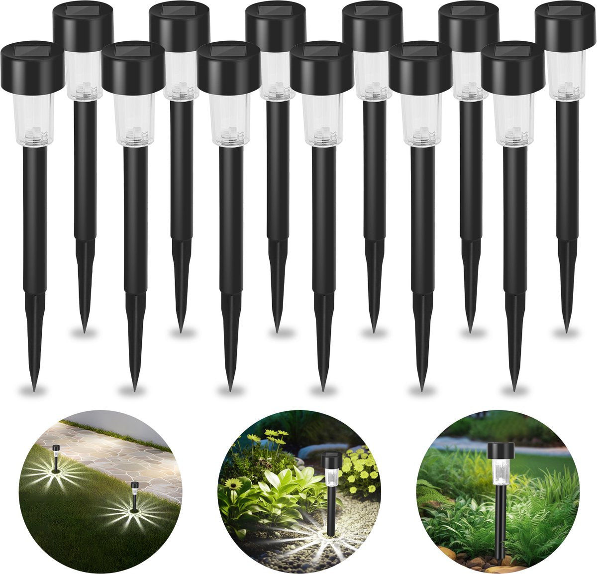 Ideaal voor tuinen, gazons, bloemperken, paden of patio's. Of het nu gaat om verlichting of decoratie, deze solar tuinlampen voegen elegantie en comfort toe aan uw buitenruimte en maken de avond nog charmanter.