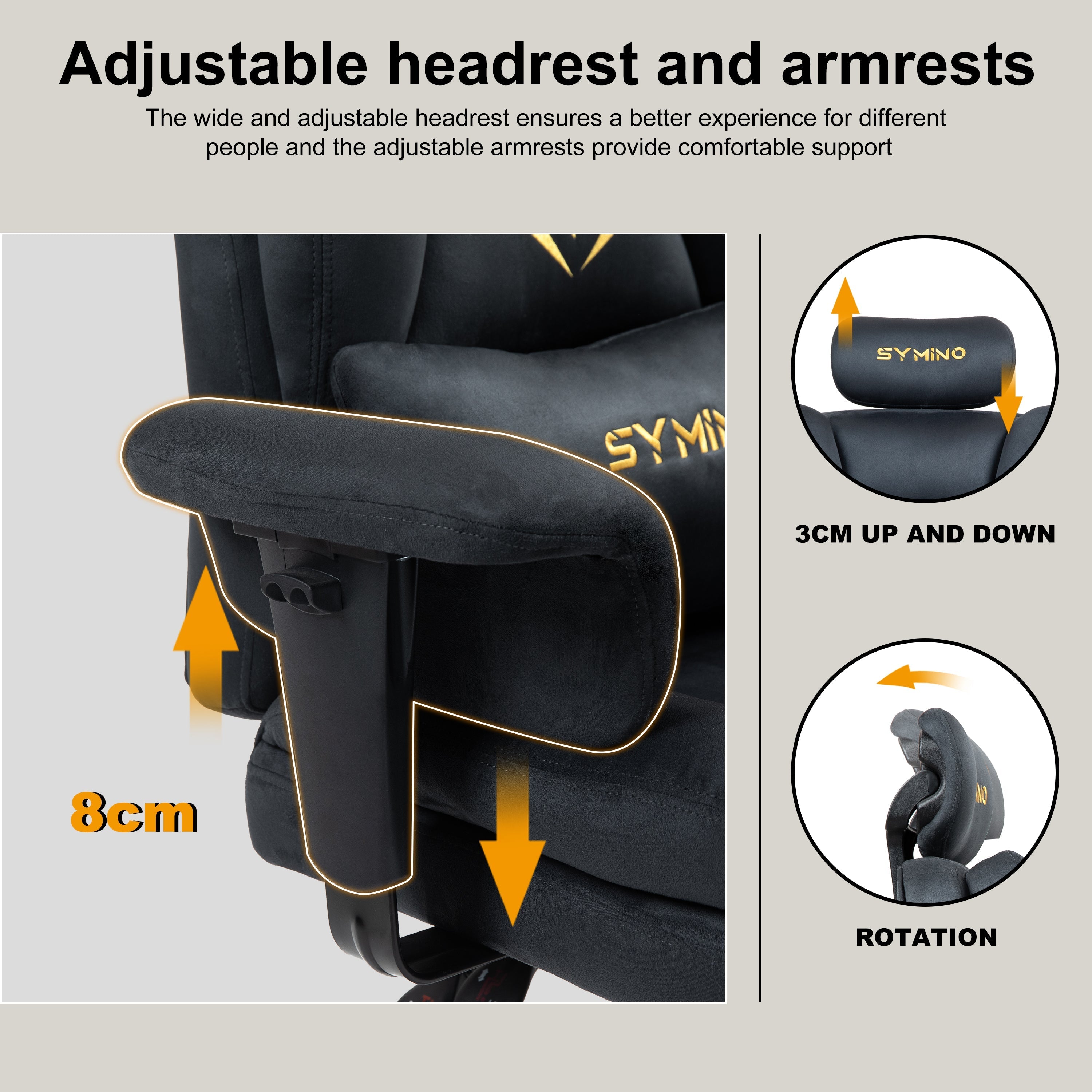 is verstelbaar van 90° tot 155°, perfect voor werk, gamen en ontspanning. De hoogte is verstelbaar (tot 8 cm) en past zich aan uw behoeften aan. Maximale belasting: 130 kg.