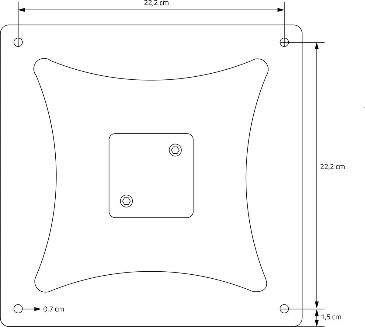 Technische gegevens: Materiaal: staal Kleur: zwart, mat Bevestigingspunten: 4 gaten Afmetingen (BxH): ca. 43 x 72 cm Afmetingen buis: ca. 8 x 8 cm Gewicht: ca. 16,5 kg