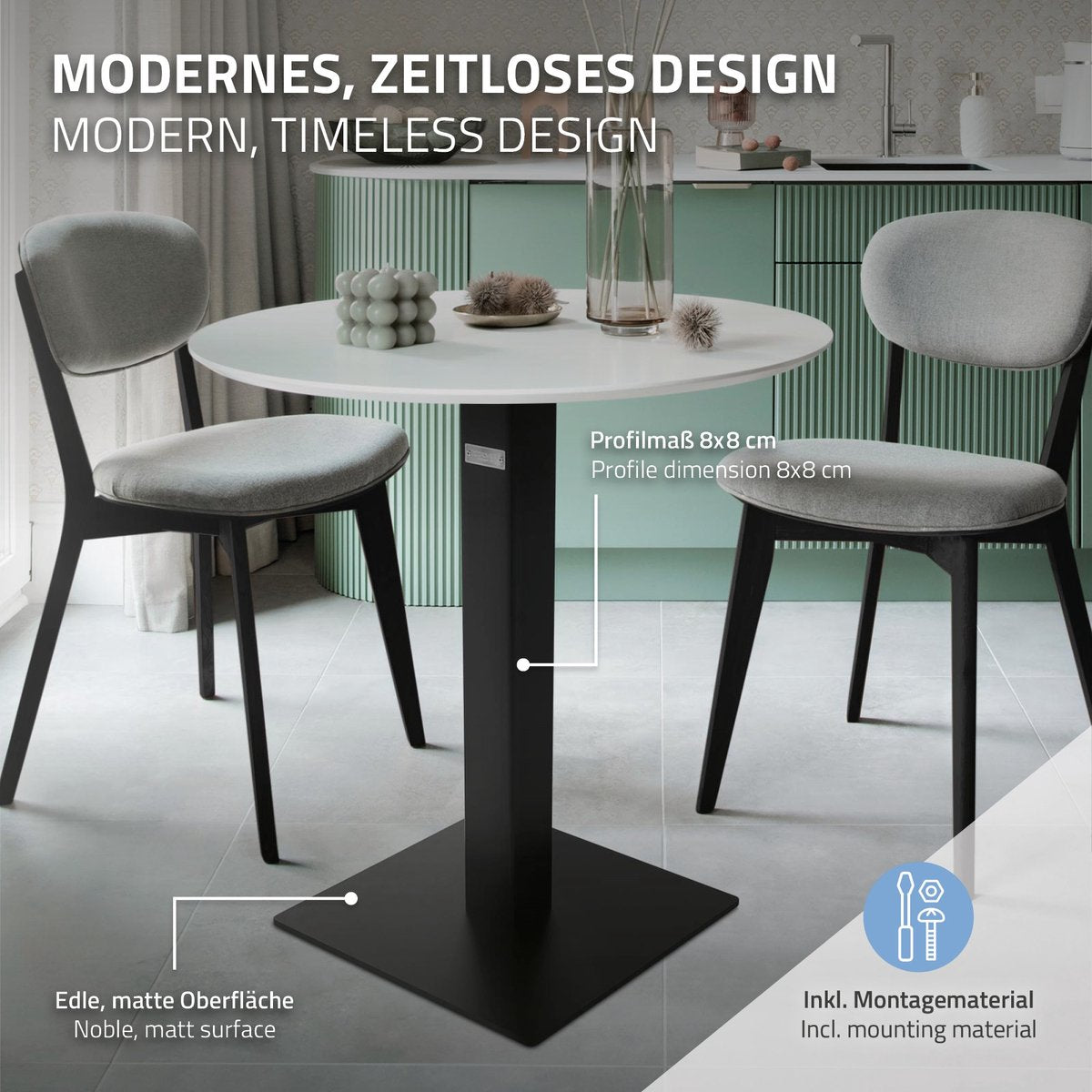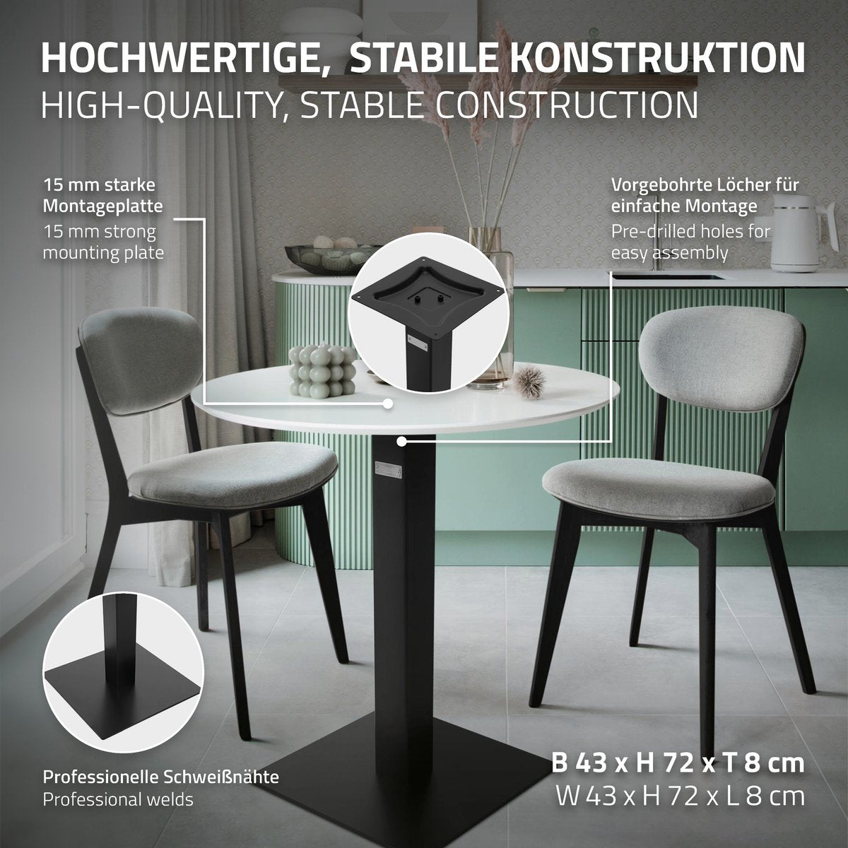 Productbeschrijving: Dit enkele tafelframe van ML-Design geeft uw tafel een industrieel karakter. Of het nu in een café, bistro, snackbar of restaurant is, dankzij het tijdloze en onopvallende ontwerp kan het in veel ruimtes worden gebruikt. Ideaal voor zowel commercieel als privégebruik. De hele constructie is niet alleen stabiel, maar ook zeer esthetisch. De ML design tafelpoot is perfect voor tafelbladen van de meest uiteenlopende materialen, zoals hout, kunststof, steen, enz. en de meegeleverde vloerbeschermer zorgt voor een veilige en krasvrije stand op de vloer. U kunt onze tafelpoot ook gebruiken in moderne interieurs. De stabiele, robuuste en trendy industriële look wordt benadrukt en dankzij het eenvoudige uiterlijk openen zich verschillende toepassingsgebieden. De poot past perfect als tafelonderstel in de keuken, voor eettafels of in restaurants. Maak uw meubels origineel en uniek! De tafelvoet is zeer eenvoudig te reinigen. Gewoon het oppervlak droog of vochtig afnemen, afhankelijk van de mate van vervuiling - klaar! De stevige steunplaat zorgt voor een veilige en stabiele schroefverbinding voor uw tafelblad. Schroeven van het tafelblad mogelijk met 4 schroeven.