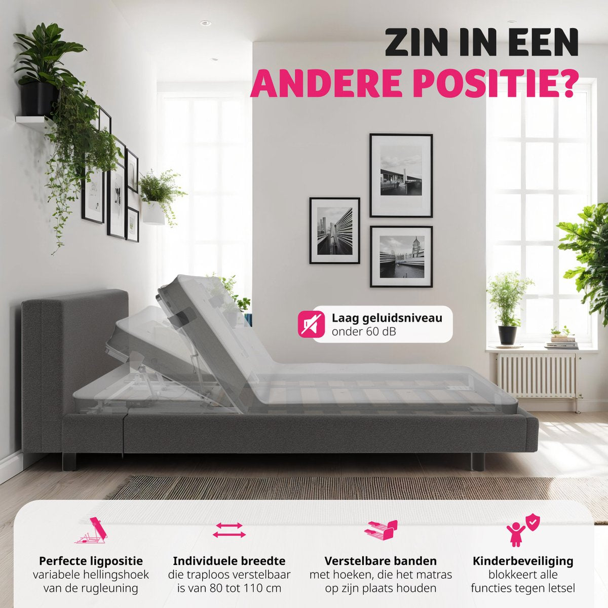 logeerbed , lattenbodem , verstelbare bedbodem , bedonderstel , rugleuning , elektrisch verstelbaar , slaapkamer , bed , rechtop , matrasbodem
