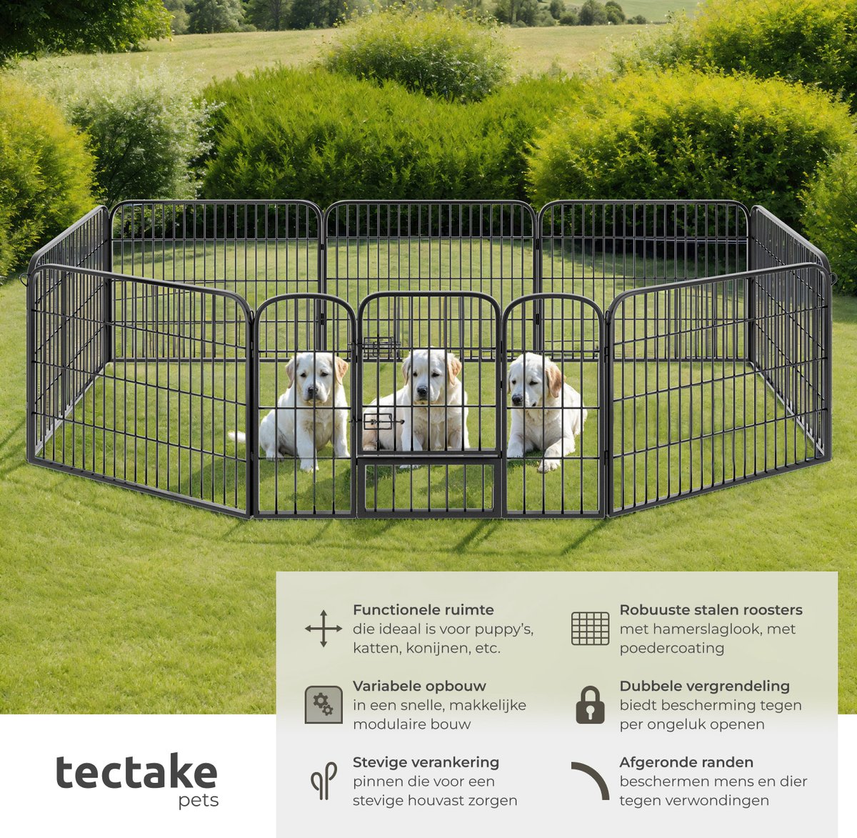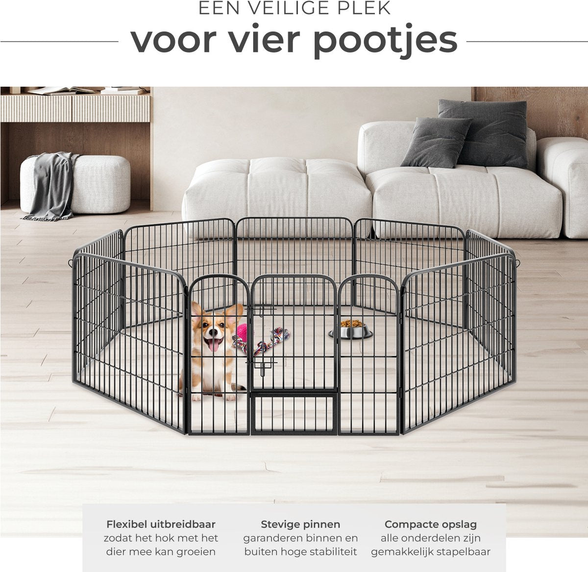 Deze uiterst kwalitatieve, stabiele puppyren is de praktische metgezel bij het grootbrengen van je kleine schatjes. Puppy's hebben de klok rond behoefte aan een liefdevolle verzorging. Opdat de kleine puppy's zich ook eens kunnen bewegen zonder voortdurende aandacht is er deze praktische puppyren. Deze puppyren beschikt over verschillende elementen die praktisch met stangen met elkaar verbonden zijn en naar believen geordend kunnen worden.
