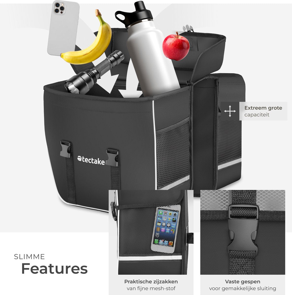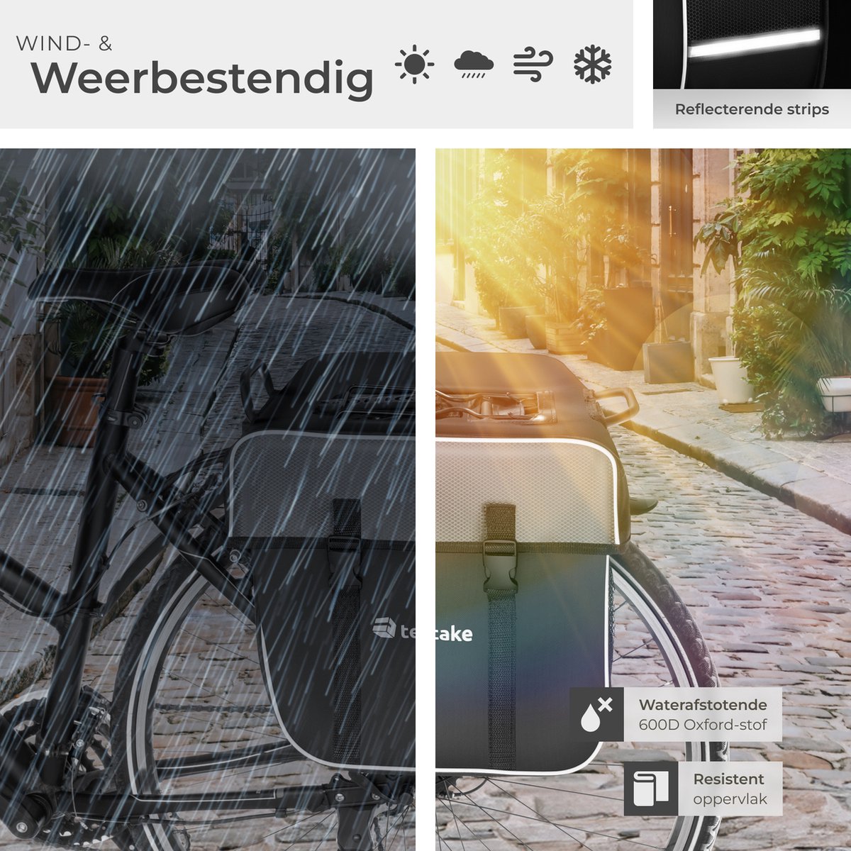 dubbele fietstas , fietstassen , waterafstotend , fietstas voor elektrische fiets , fietstas voor ebike , fietstas dubbel , fietstas bagagedrager , met reflectoren , refelecterend , draagtas , fietstas 2-in-1