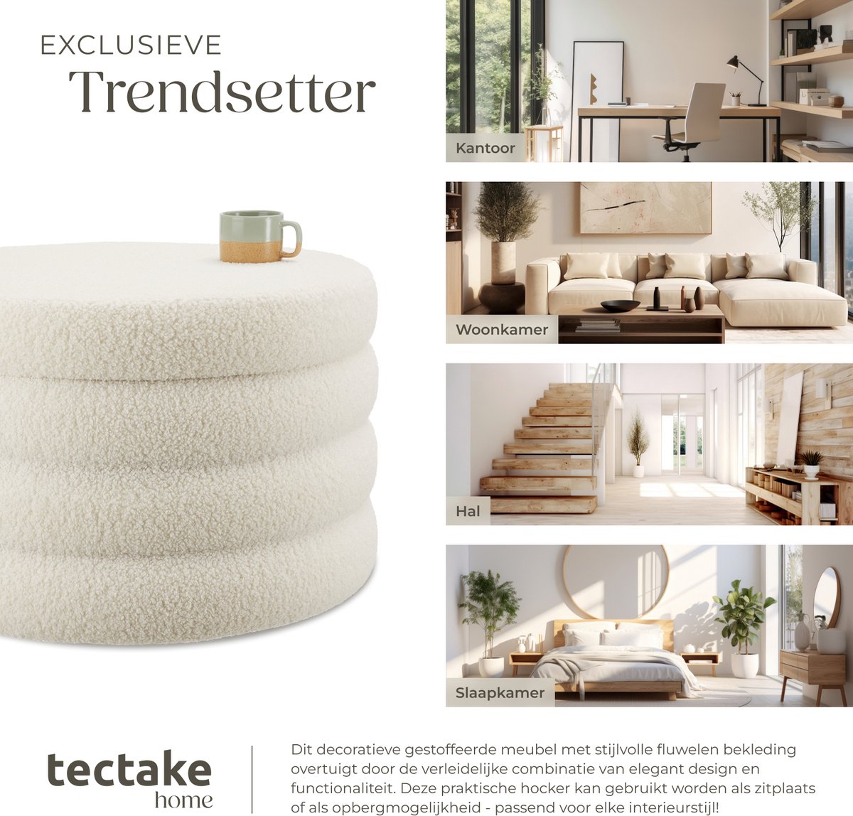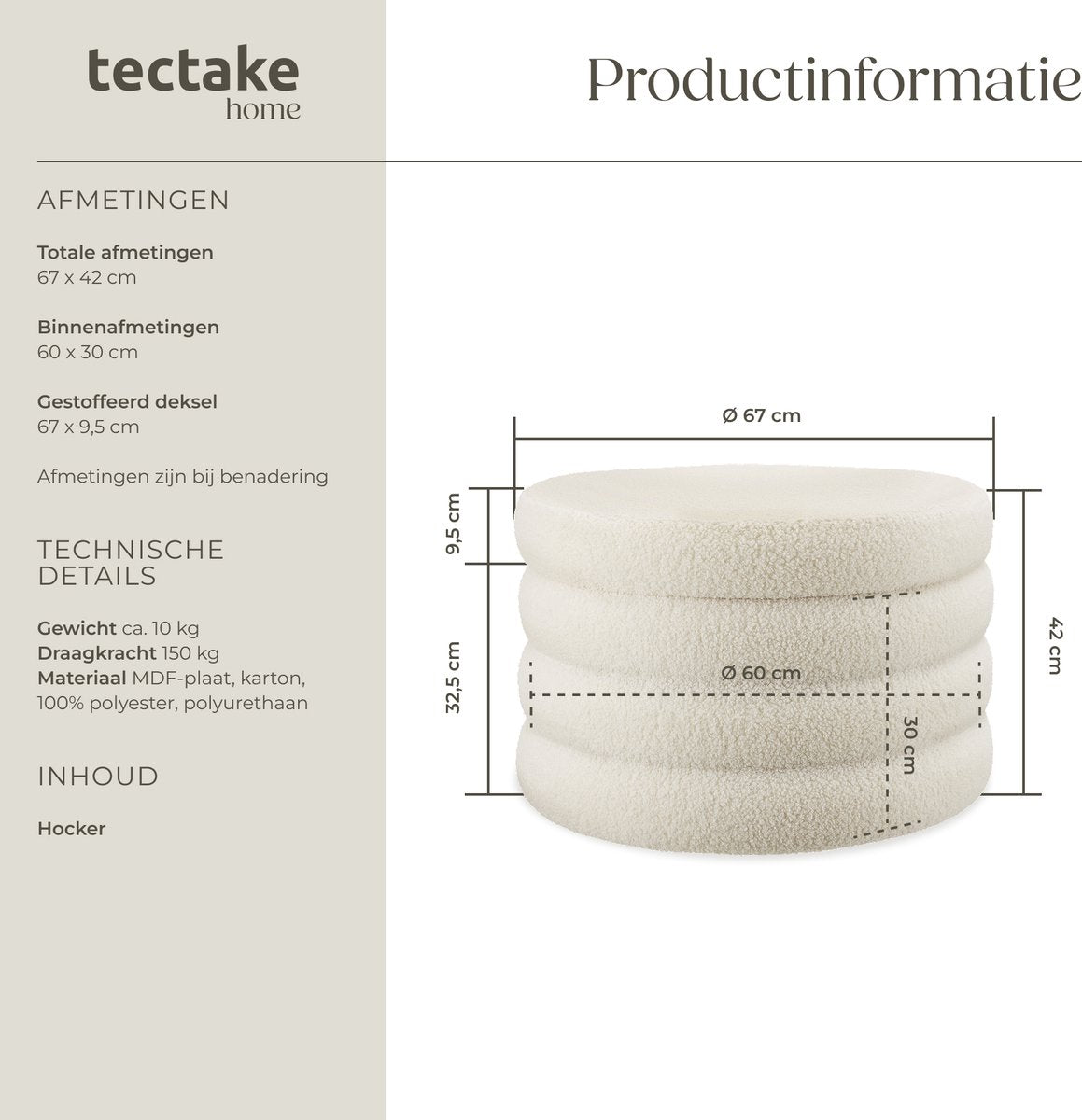 Ervaar trendbewuste feelgoodflair en ultieme functionaliteit met de poef Altu XL van tectake. Deze blikvanger met zachte bouclé-stof valt op door zijn gezellige Scandi-stijl en geeft je huis een uitnodigende knuffelfactor.