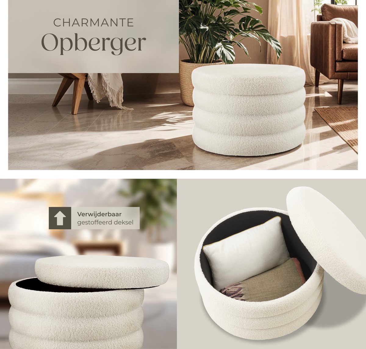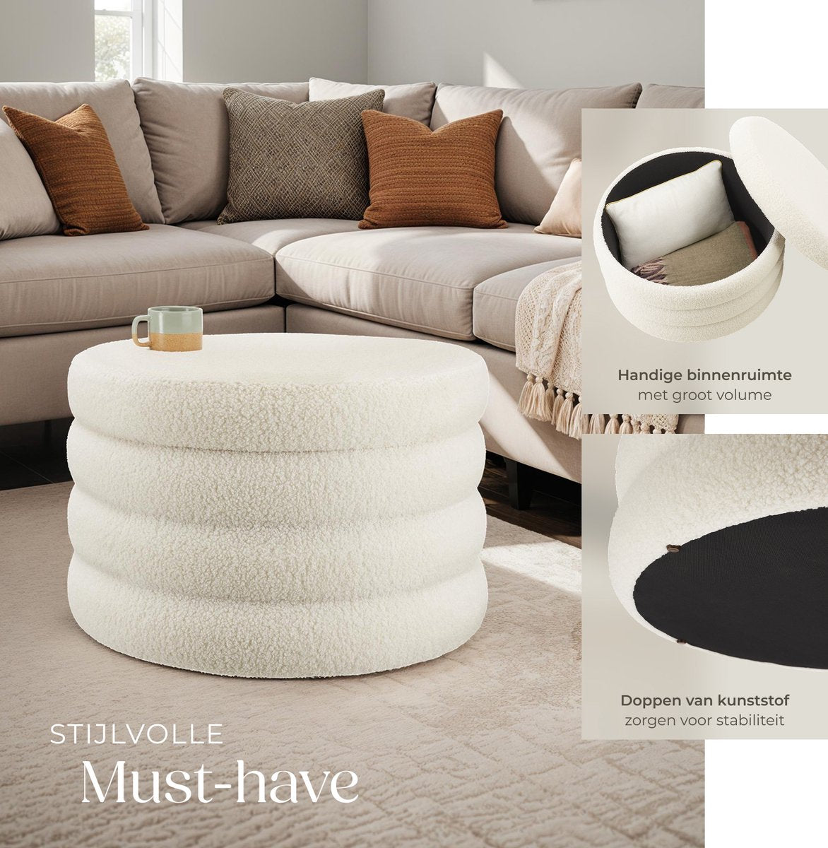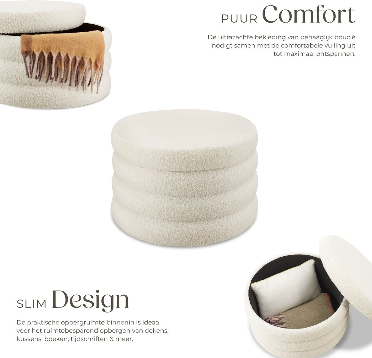 Poef Altu XL, gestoffeerd, opbergruimte Bouclé crèmewit