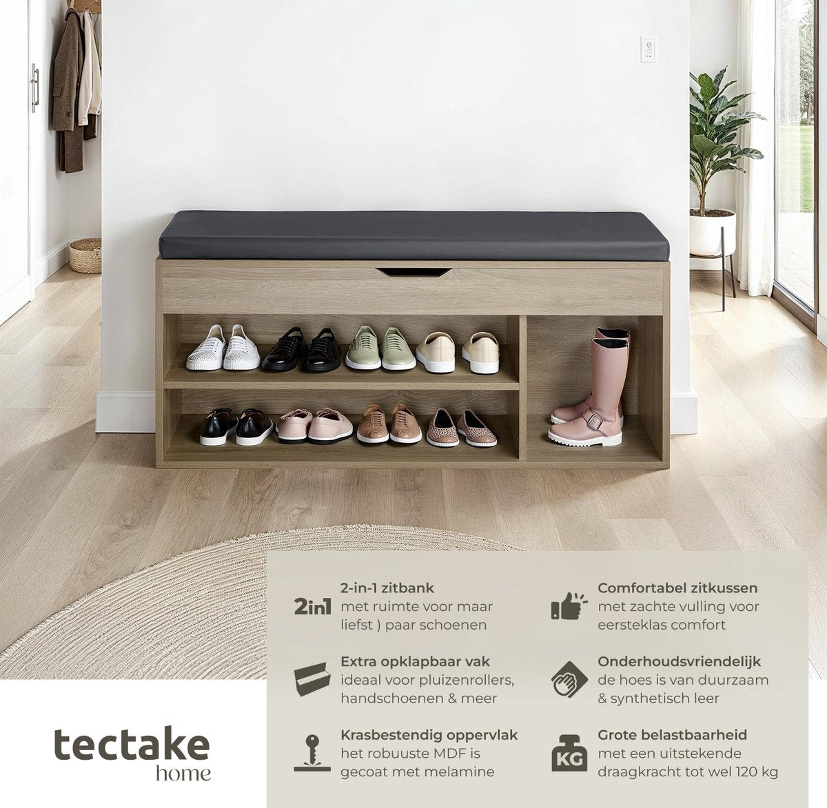 SCHOENBANK MET ZATPLAK, ZACHT GEVOERD: Voor extra comfort is de bank uitgerust met een zacht, gevoerd zitkussen. De zitbank nodigt uit om comfortabel in de gang te zitten en maakt de schoenenbank tot het perfecte meubelstuk voor hal en hal.