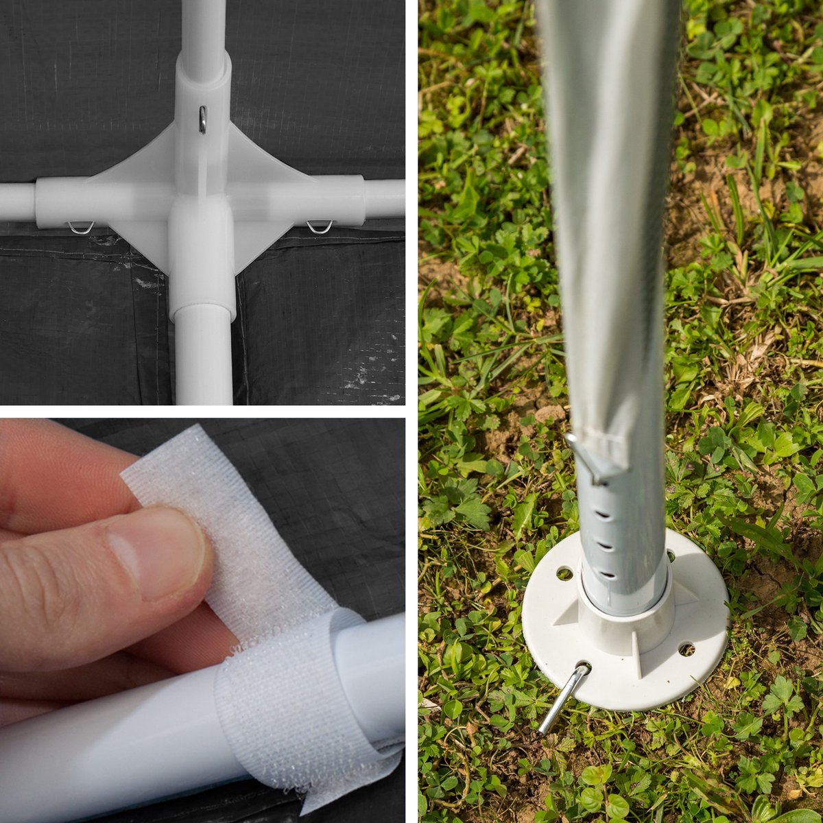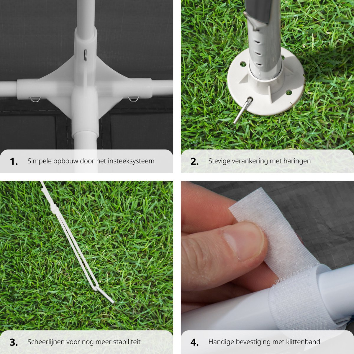Dankzij het praktische klittenbandsysteem kunnen de vijf grote zijwanden betrouwbaar aan het stevige frame worden bevestigd.