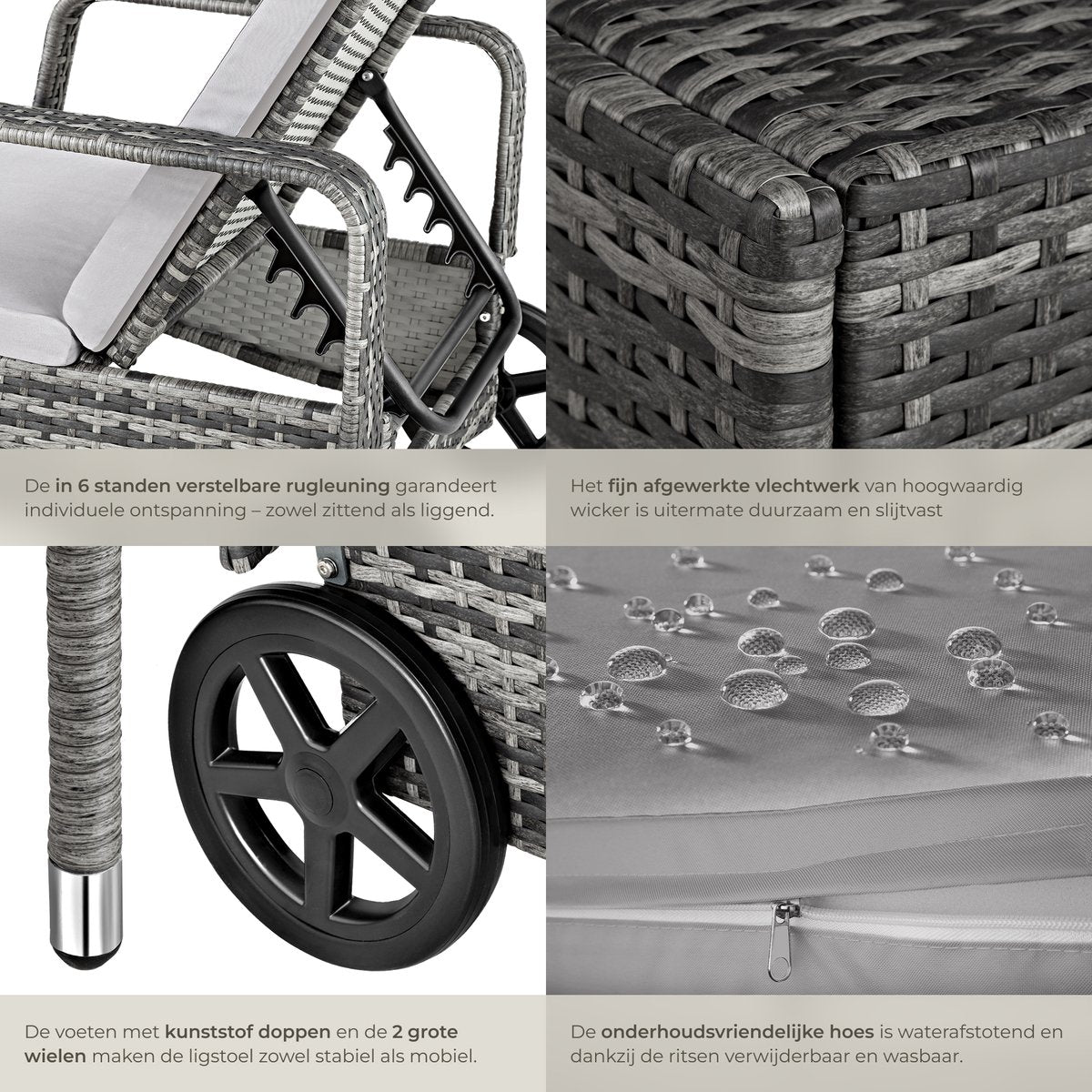 Ligstoel , wicker , zonnebed , tuinmeubel , zonnestoel , rotan , verstelbaar , verstelbare rugleuning , met armleuningen , ligbed