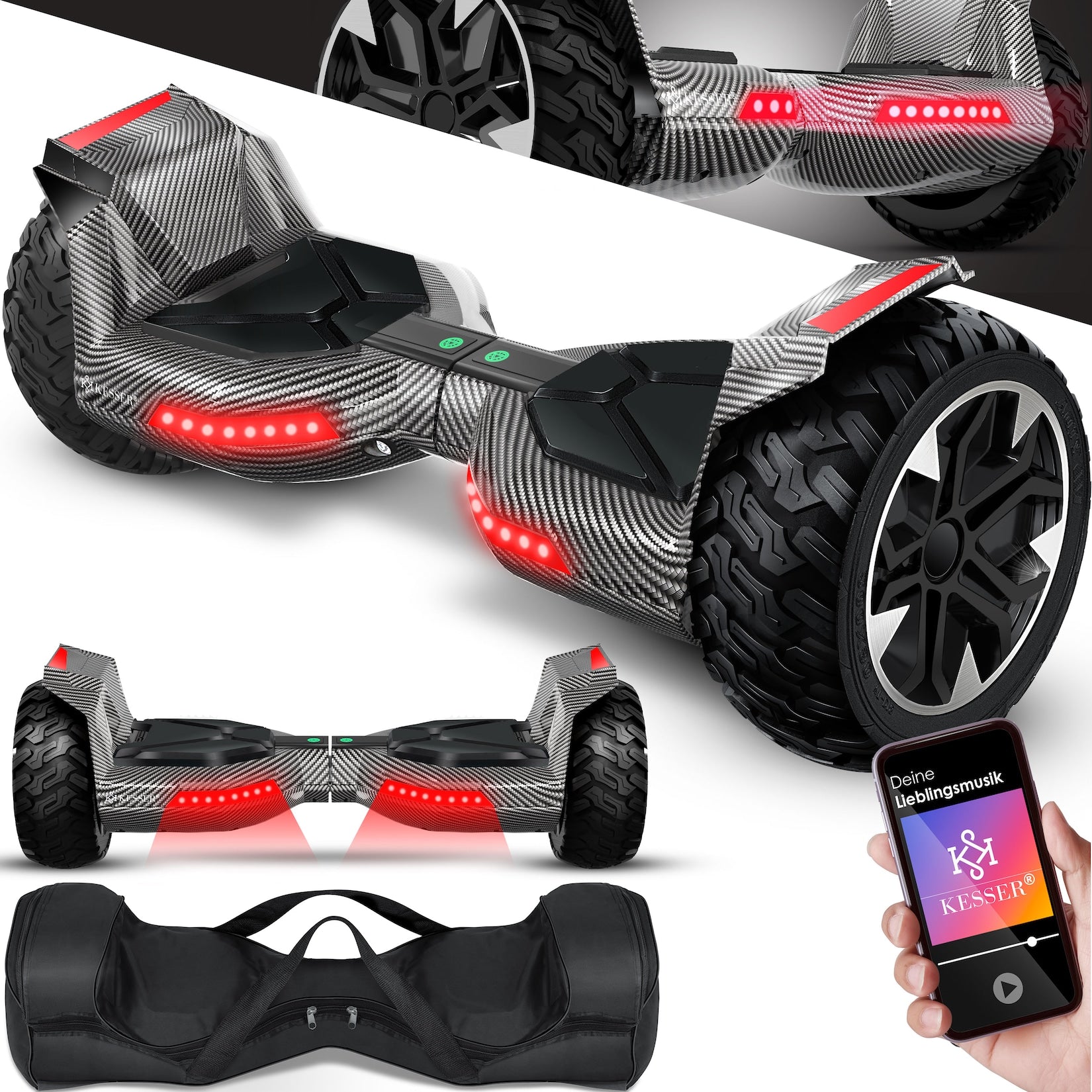 KESSER Hoverboard met krachtige 36 volt, laadt op in 2-3 uur, geïntegreerde Bluetooth-luidsprekers, veiligheid door verlichting en reflectoren, rijplezier voor jong en oud