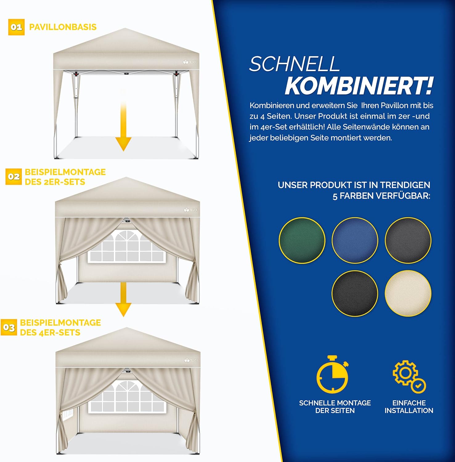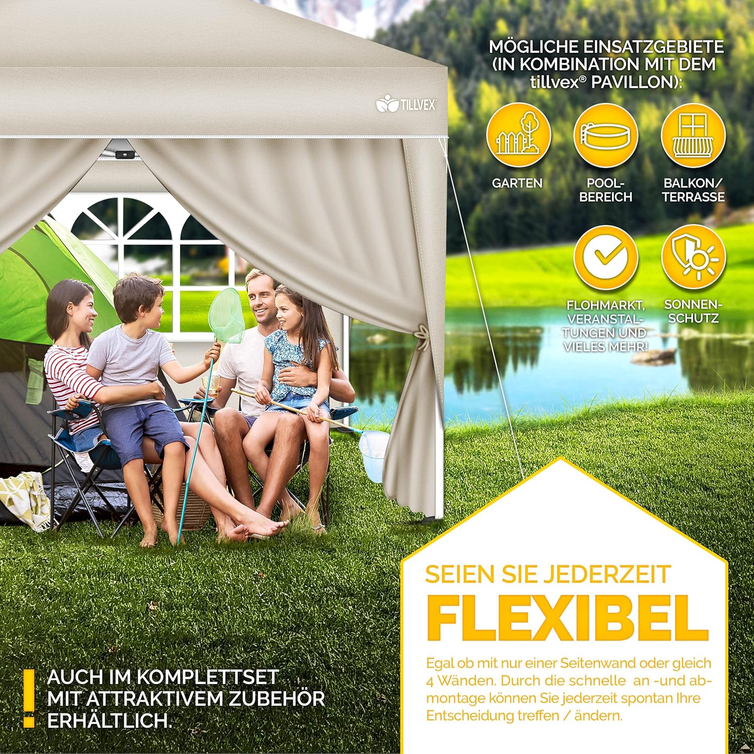 Tillvex Zijwand voor paviljoen, 3 x 3 m, vouwpaviljoen, zijpanelen, waterafstotend, zijramen en ritssluiting, zijwanden voor tuintent, partytent