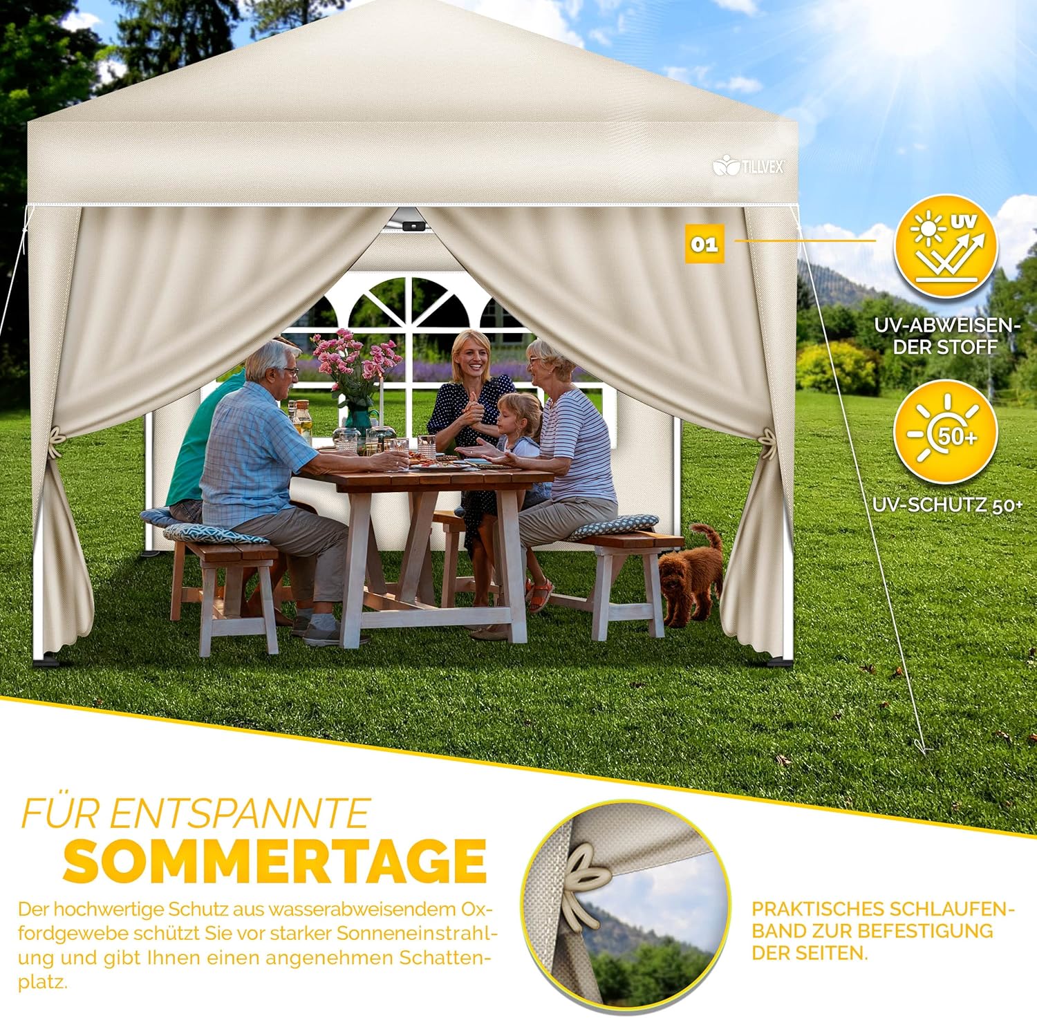 Ideaal vouwpaviljoen, zijpanelen voor gebruik als zonwering, voor het terras, balkon, zwembad, tuin, camping, evenement, rommelmarkt of bij het volgende uitstapje.