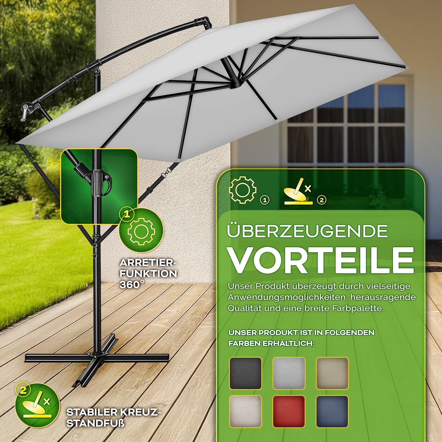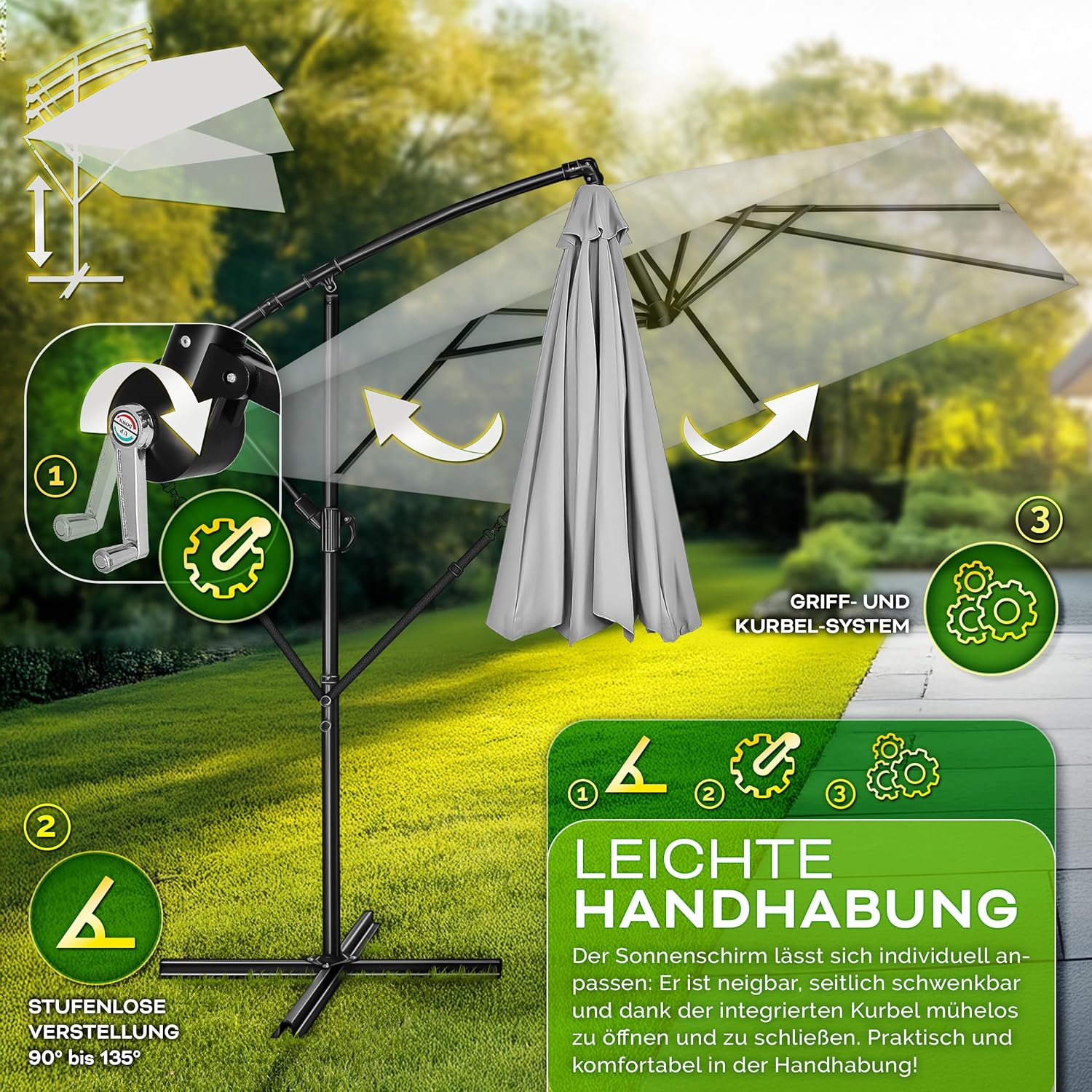 • Overtuigende kwaliteit: dankzij de traploos verstelbare hellingshoek (90-135 graden) kan de tuinparasol hoekig met een vergrendelingshendel precies naar behoefte worden uitgelijnd. Zo krijg je altijd het perfecte schaduwoppervlak, zonder de hele parasol te hoeven bewegen.