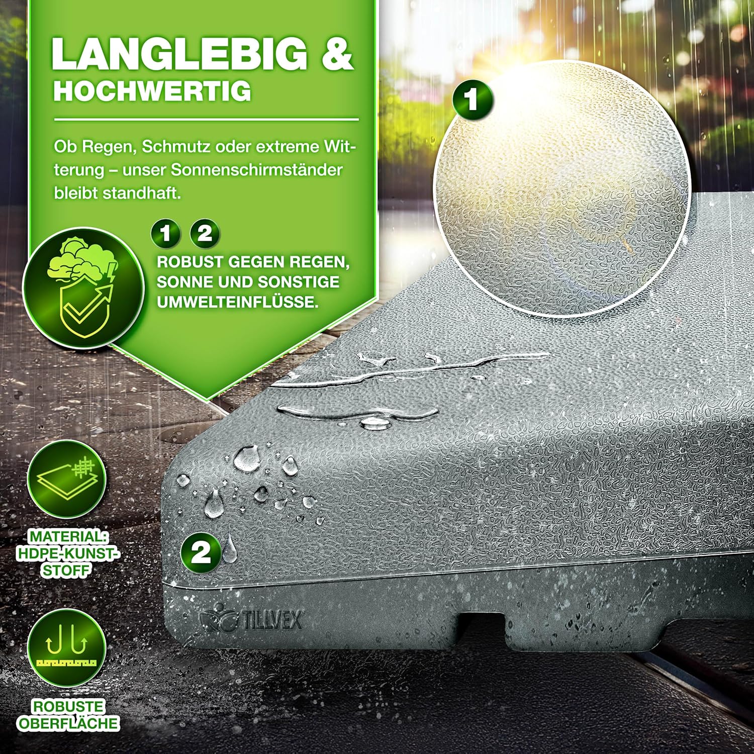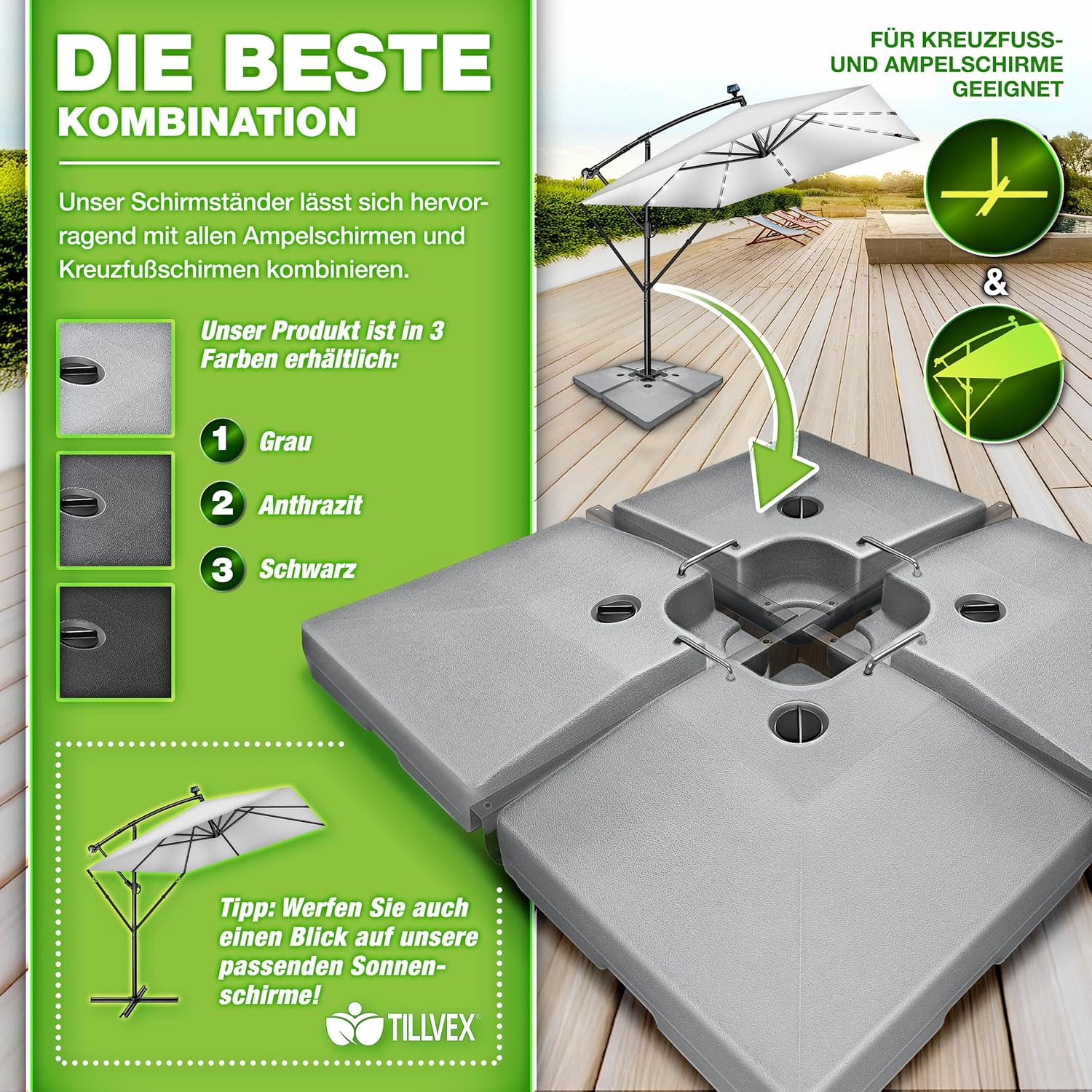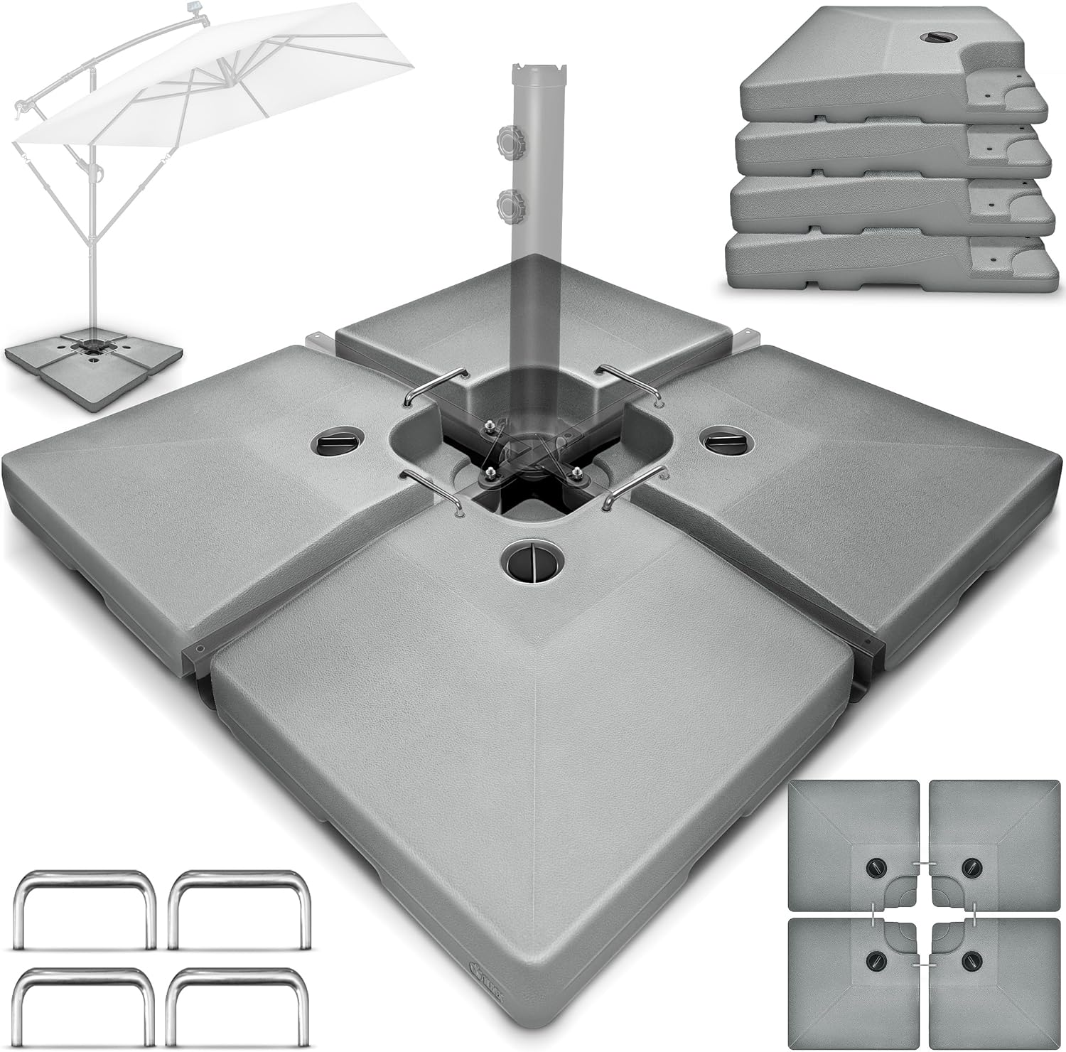 tillvex Parasolstandaard 90 liter / 120 kg – 4-delig voor zweefparasol incl. metalen connector | parasolgewicht kan worden gevuld met water of zand | parasolstandaard zweefparasolstandaard weerbestendig