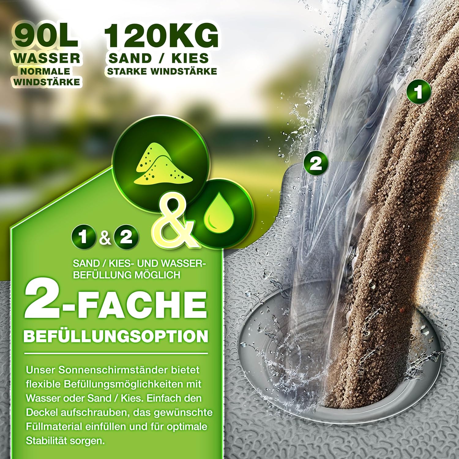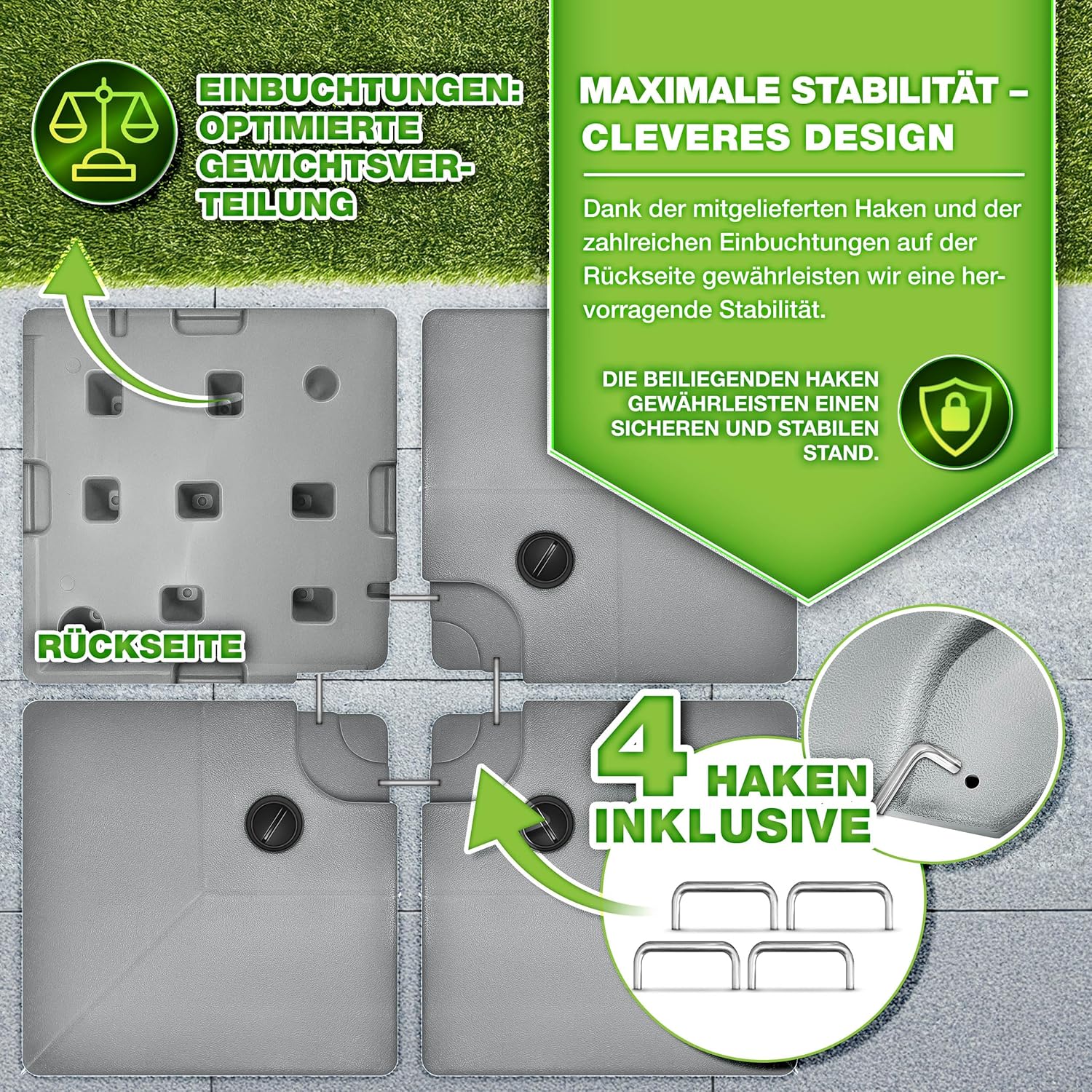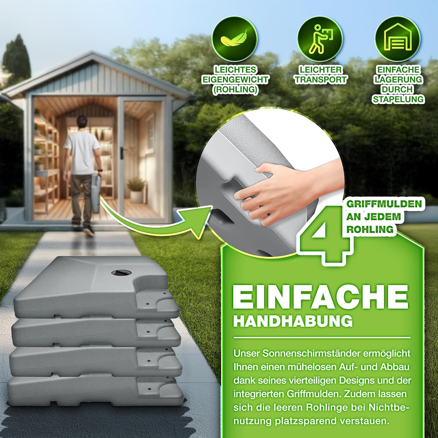 tillvex Parasolstandaard 90 liter / 120 kg – 4-delig voor zweefparasol incl. metalen connector | parasolgewicht kan worden gevuld met water of zand | parasolstandaard zweefparasolstandaard weerbestendig