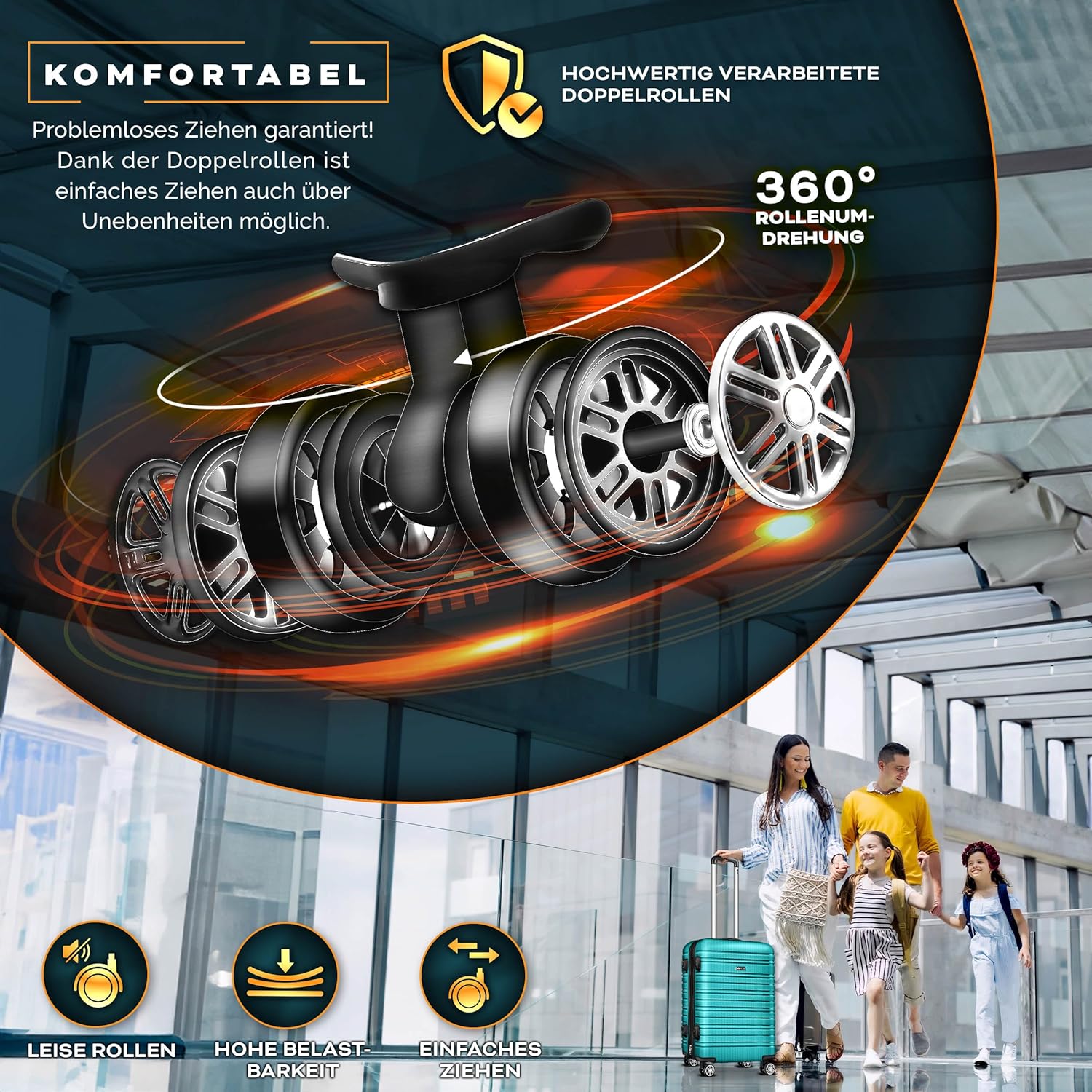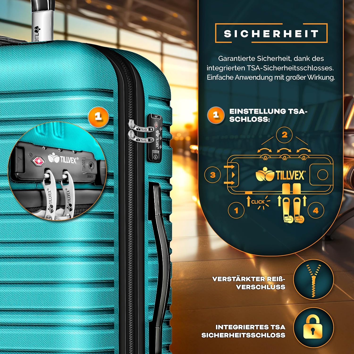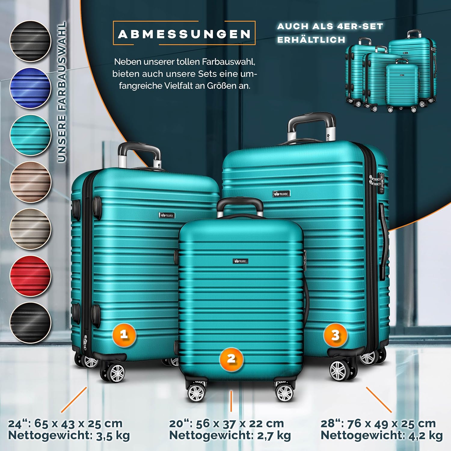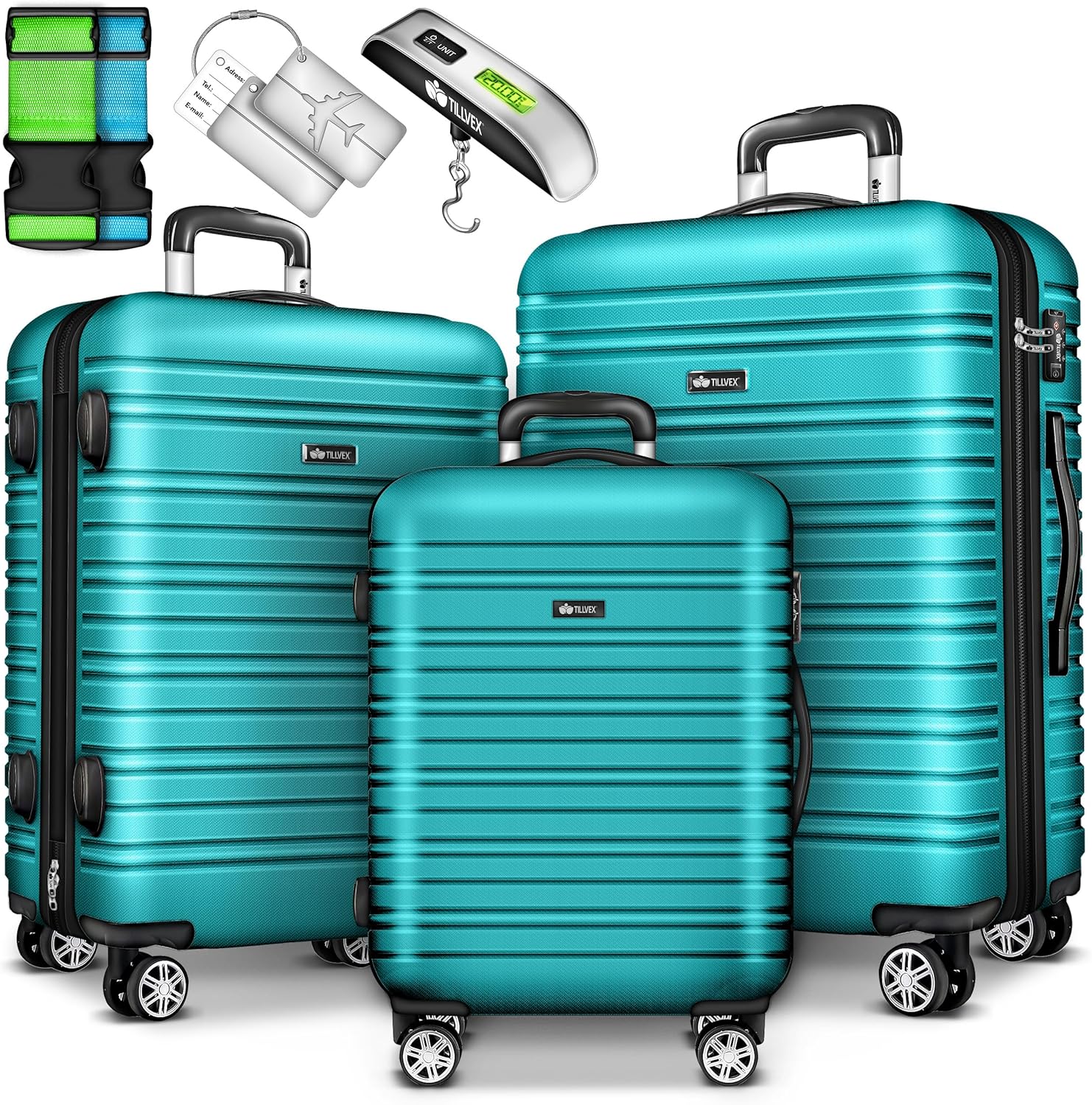 tillvex Reiskofferset 3-delig met bagageweegschaal, kofferriemen en kofferlabels, harde schaal, kofferset 4 wielen, trolley, bagagekoffer met TSA-slot, rolkoffer, hardshell-kofferset M-L-XL
