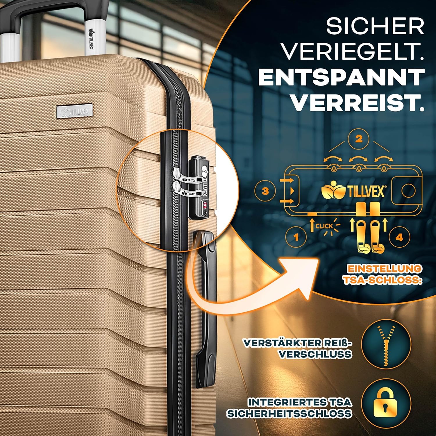 Tillvex® Reiskofferset - 4-delig - ABS- Kofferset - Champagne