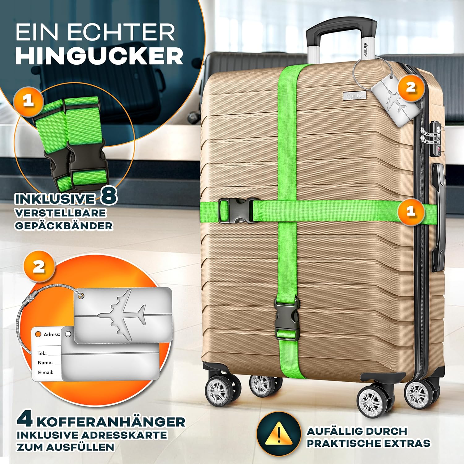 • Praktische accessoires: naast de hoogwaardige harde koffers bevat onze set nuttige accessoires zoals bagagelabels (4 stuks) en kofferbanden (8 stuks) voor elke koffer en een kofferweegschaal. Zo wordt de identificatie vergemakkelijkt en helpt de kofferweegschaal extra kosten te voorkomen.