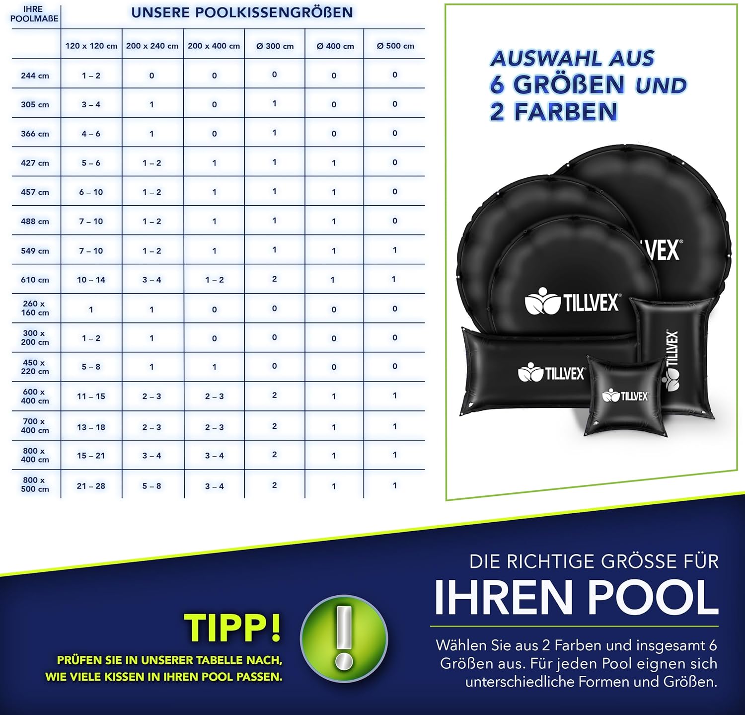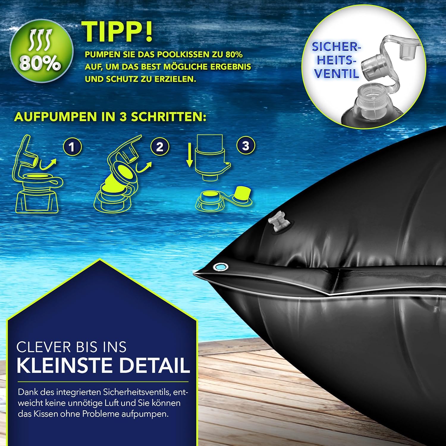 Tillvex Zwembadkussen Winter XXL, luchtkussen inclusief Reparatieset, winterkussen met veiligheidsventiel, zwembadkussen, zwembadafdekking, kussen, dubbele naad