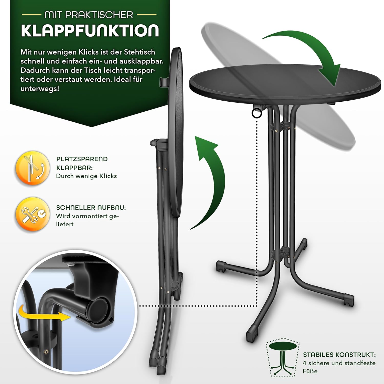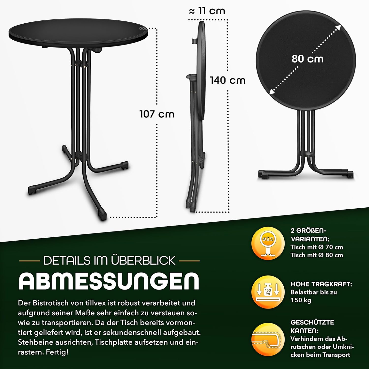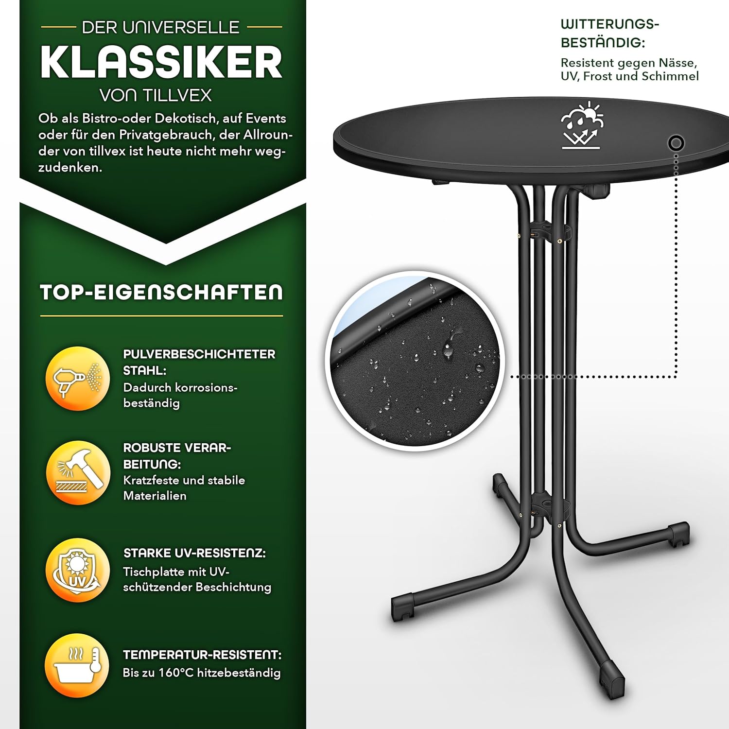 Tillvex Gastro statafel, inklapbaar, diameter 70-80 cm, met hoes, bistrotafel, klaar gemonteerd, klaptafel, rond, weerbestendige partytafel, tuintafel, binnen en buiten