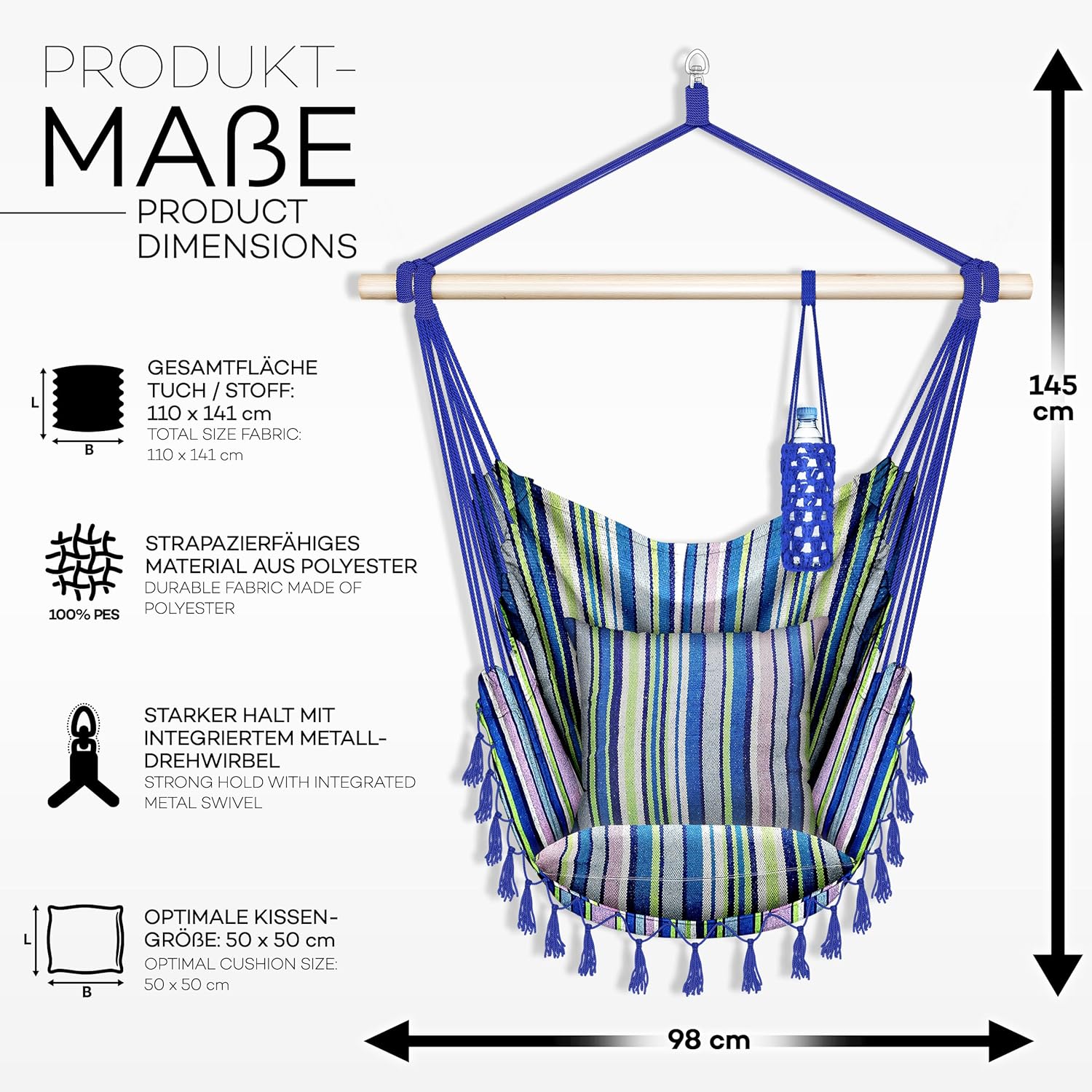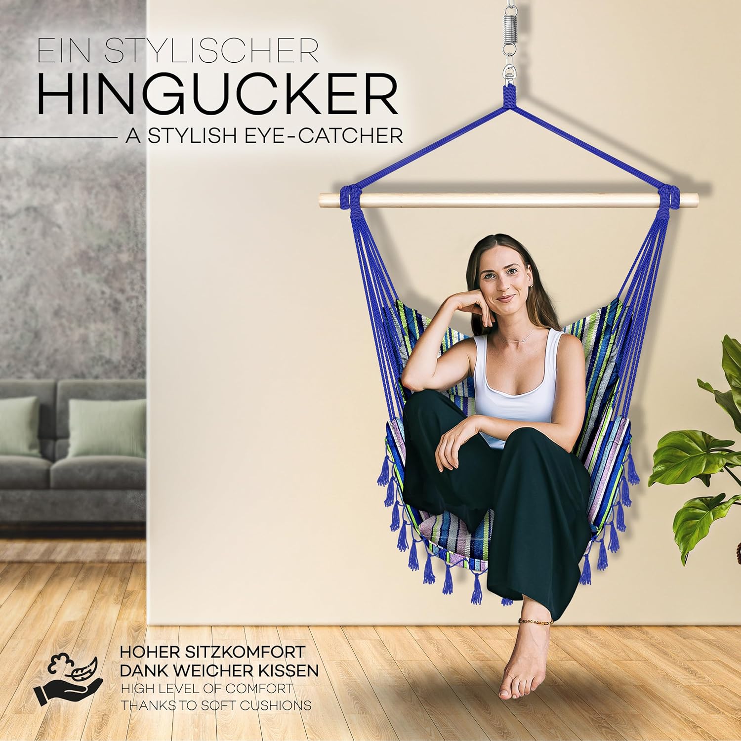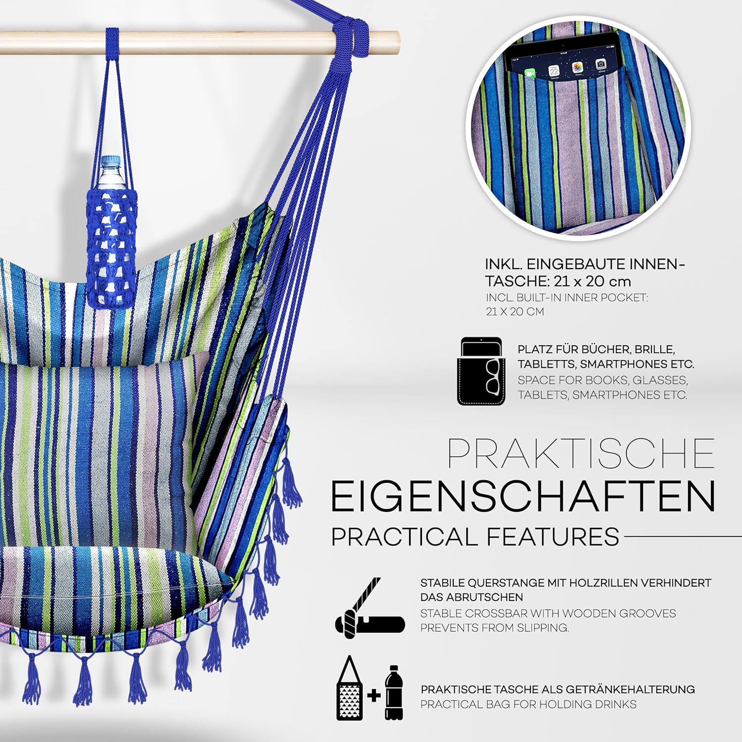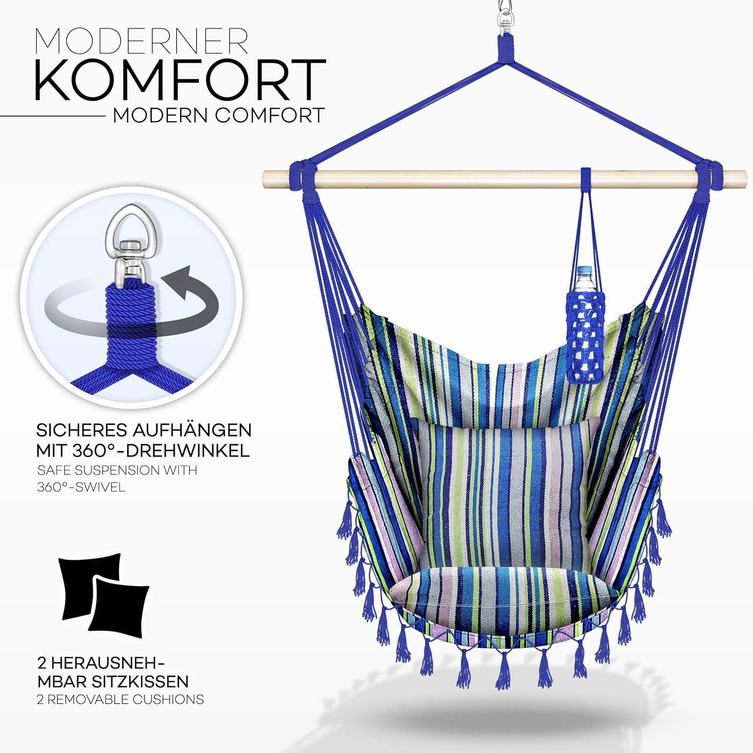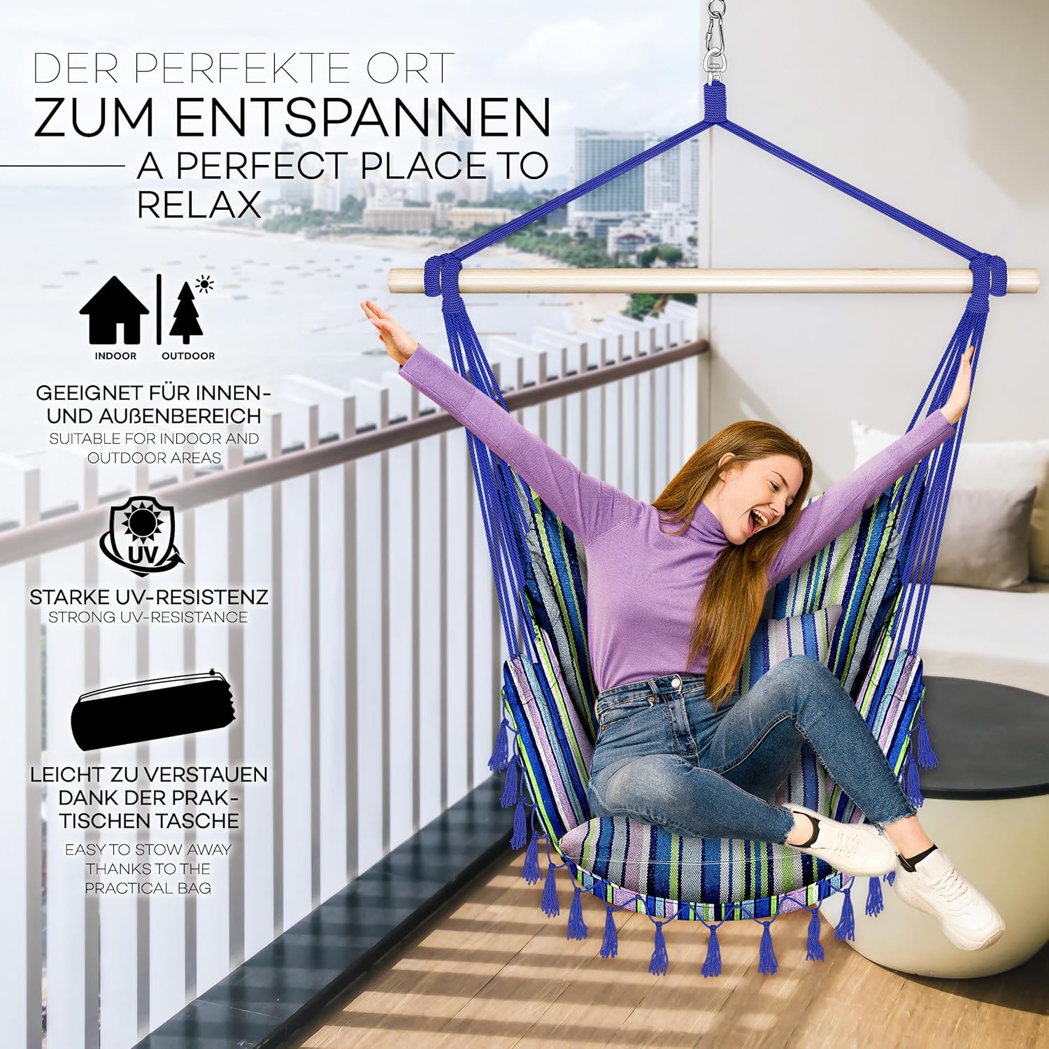Tilvex hangstoel 150 kg | Hangstoel voor binnen en buiten | Weerbestendige hangmand | Schommelmand met kussen