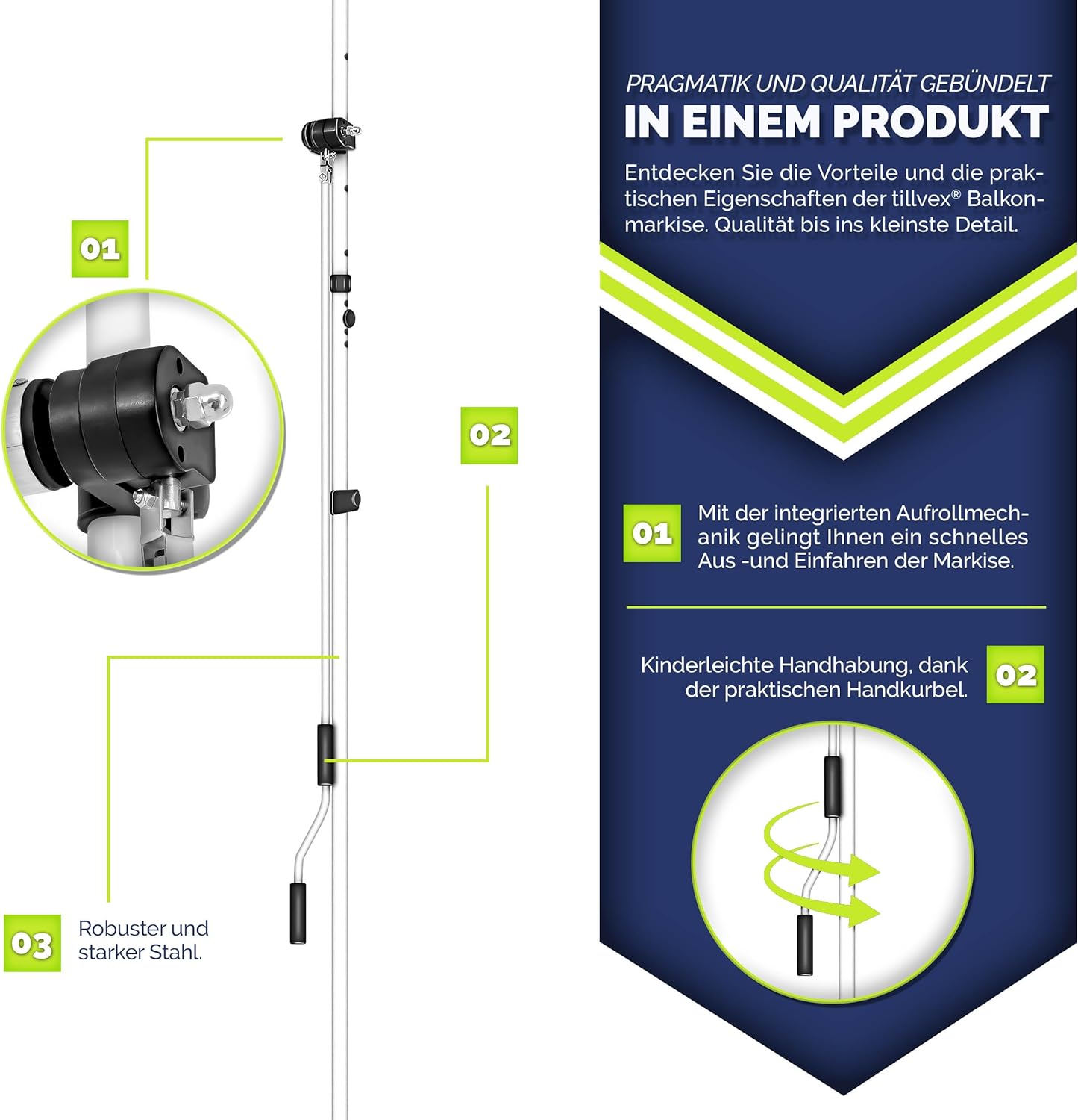Voor elke ruimte: de tillvex balkonluifel is de perfecte inkijkbescherming voor het balkon, terras, tuin of veranda. Bescherm jezelf met de terrasoverkapping tegen plotselinge zomerregen, uv-straling en verblindend licht.