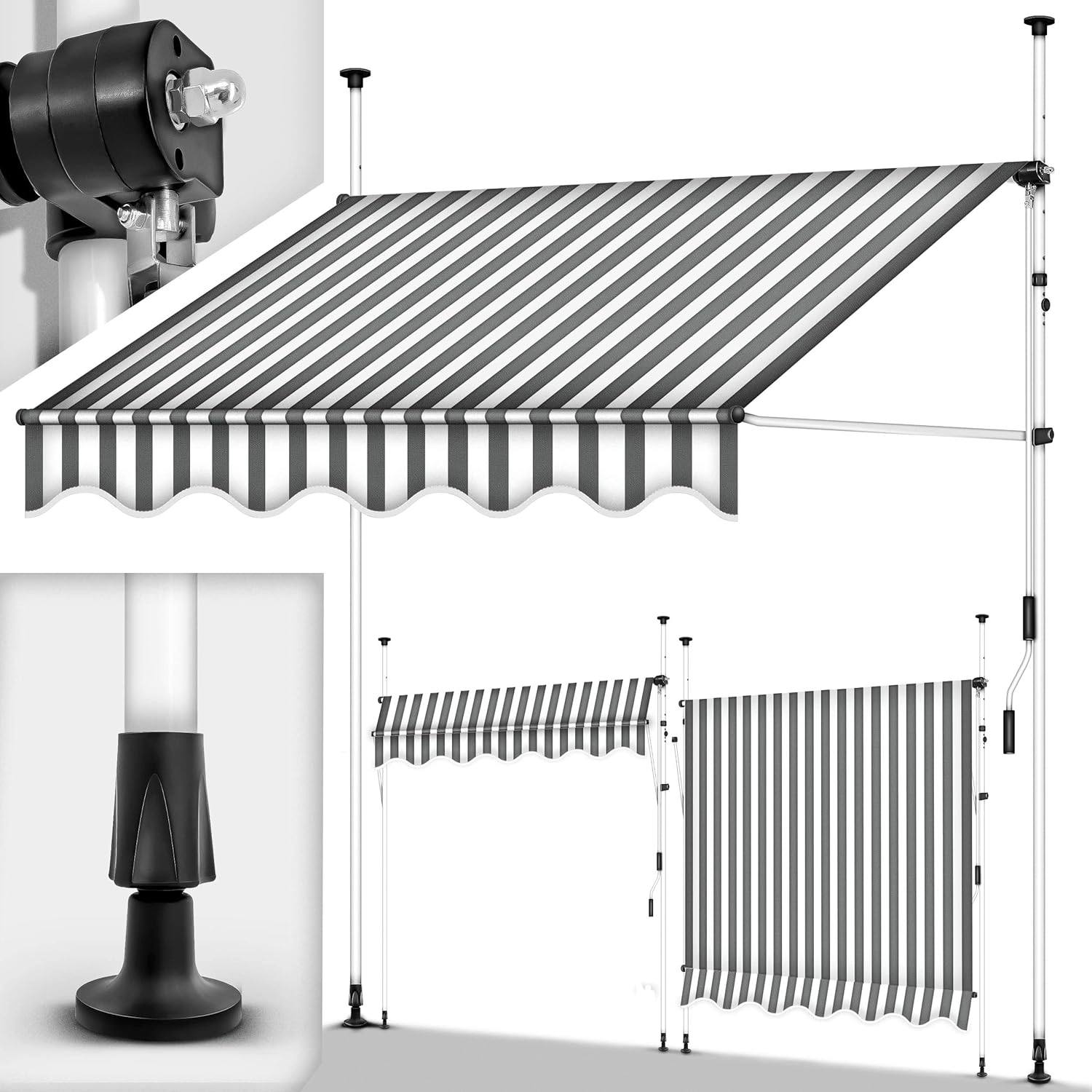 tillvex Klemluifel met handslinger, balkon, balkonluifel zonder boren, luifel uv-bestendig en in hoogte verstelbaar, zonwering, waterdicht (grijs-wit, 350 cm)