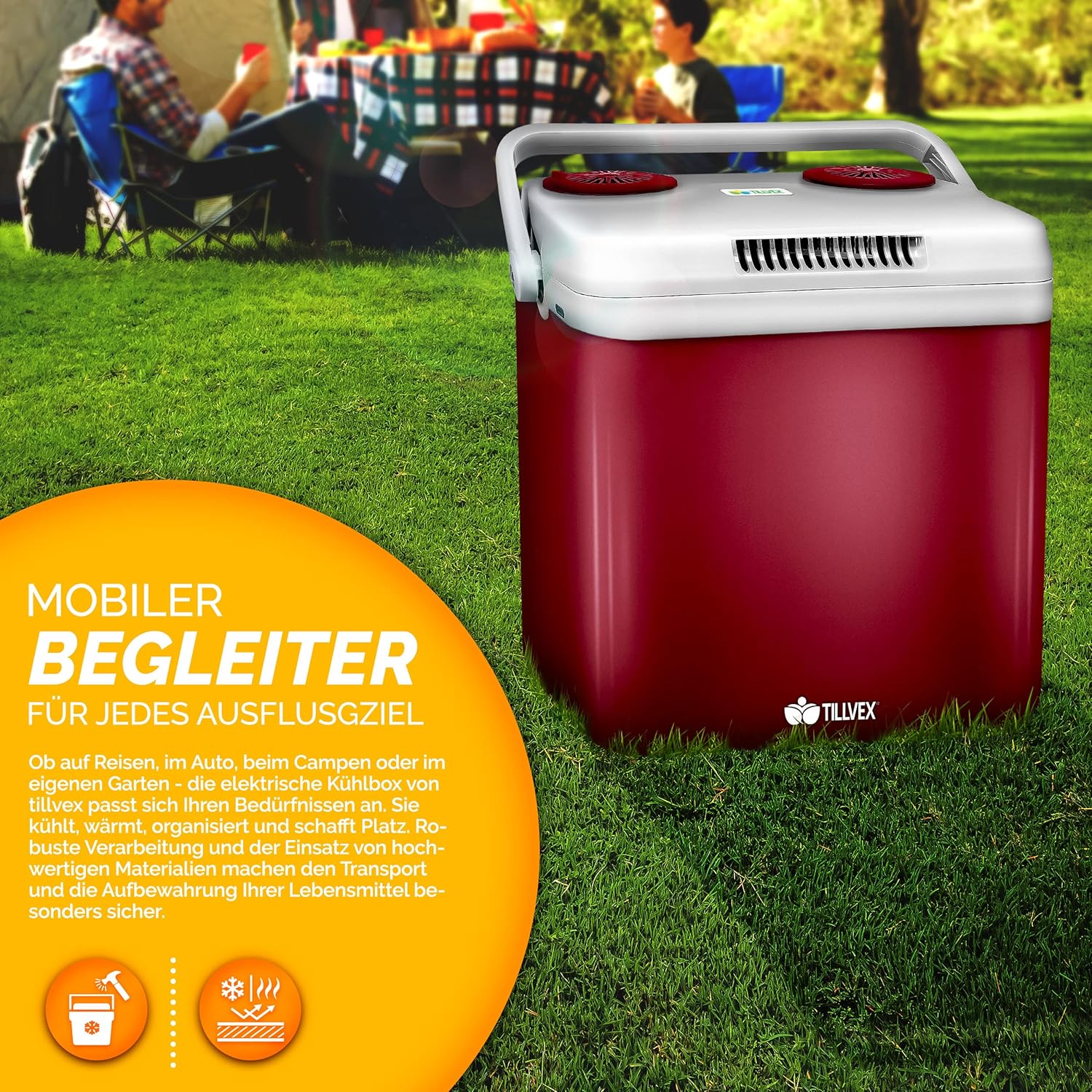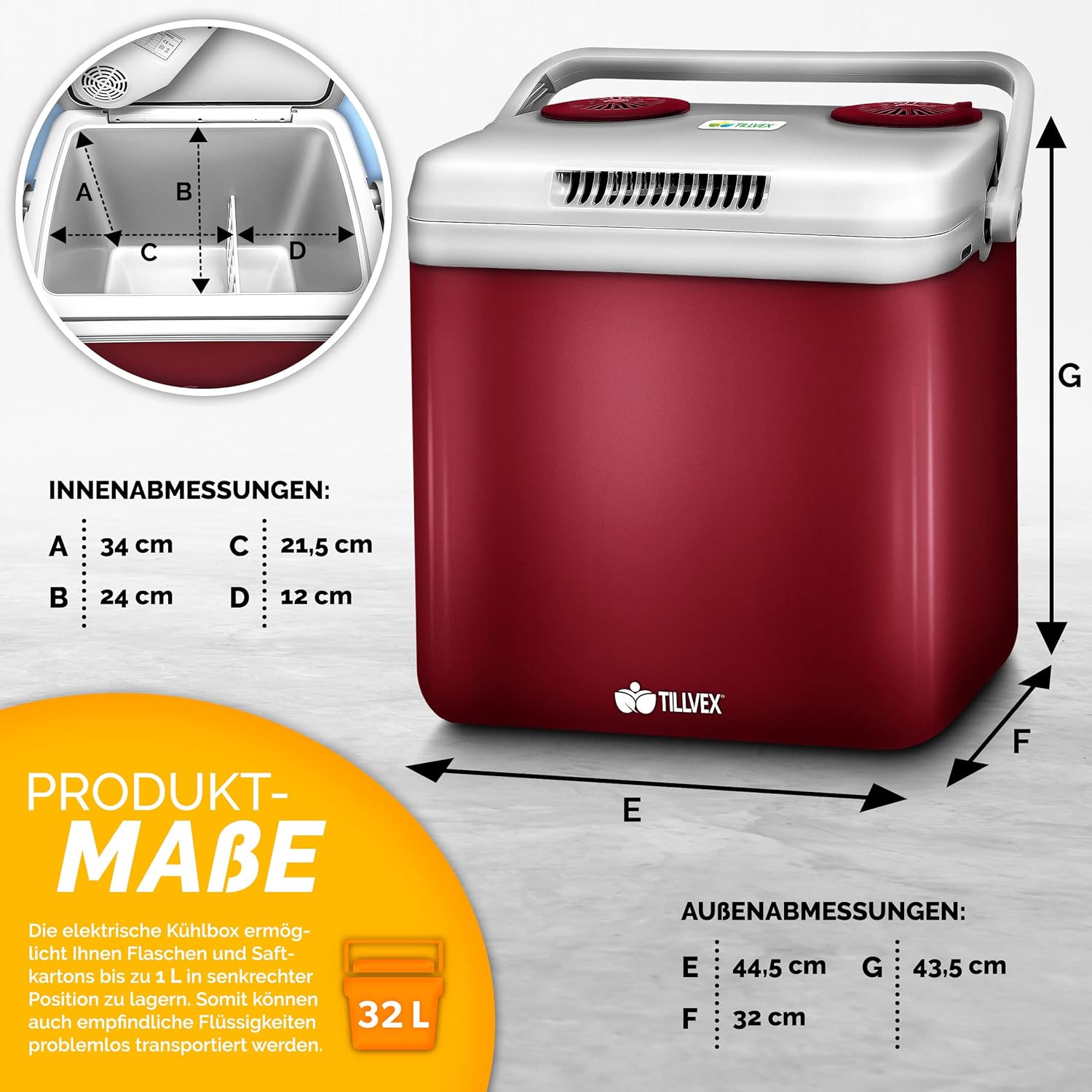 tillvex Koelbox, elektrisch, 32 liter, mini-koelkast 230 V en 12 V, voor auto, camping, koelt en verwarmt, ECOModus